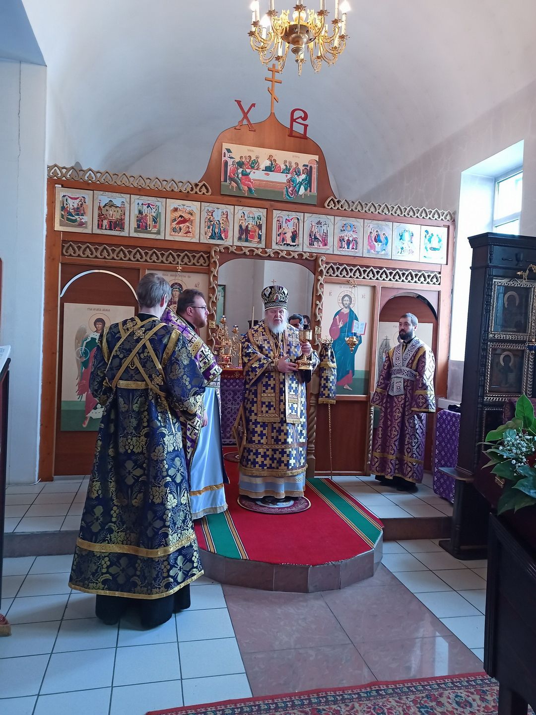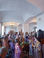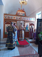 В завершение богослужения перед иконой священномученика Сергия было совершено славление, после чего отец благочинный поблагодарил епископа Николая за совершённое богослужение.