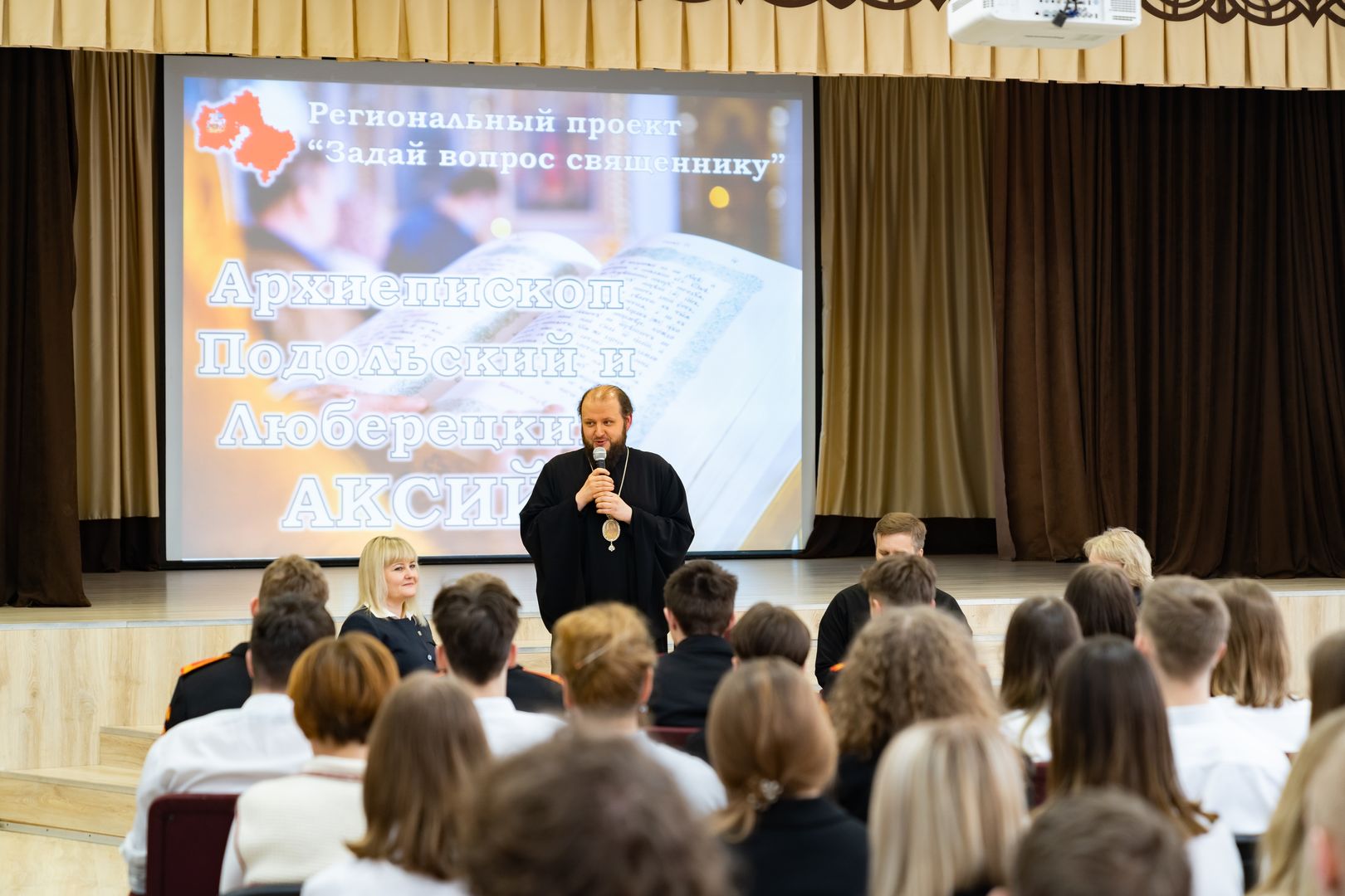 12 апреля архиепископ Подольский и Люберецкий Аксий посетил гимназию имени Подольских курсантов в городе Климовск.