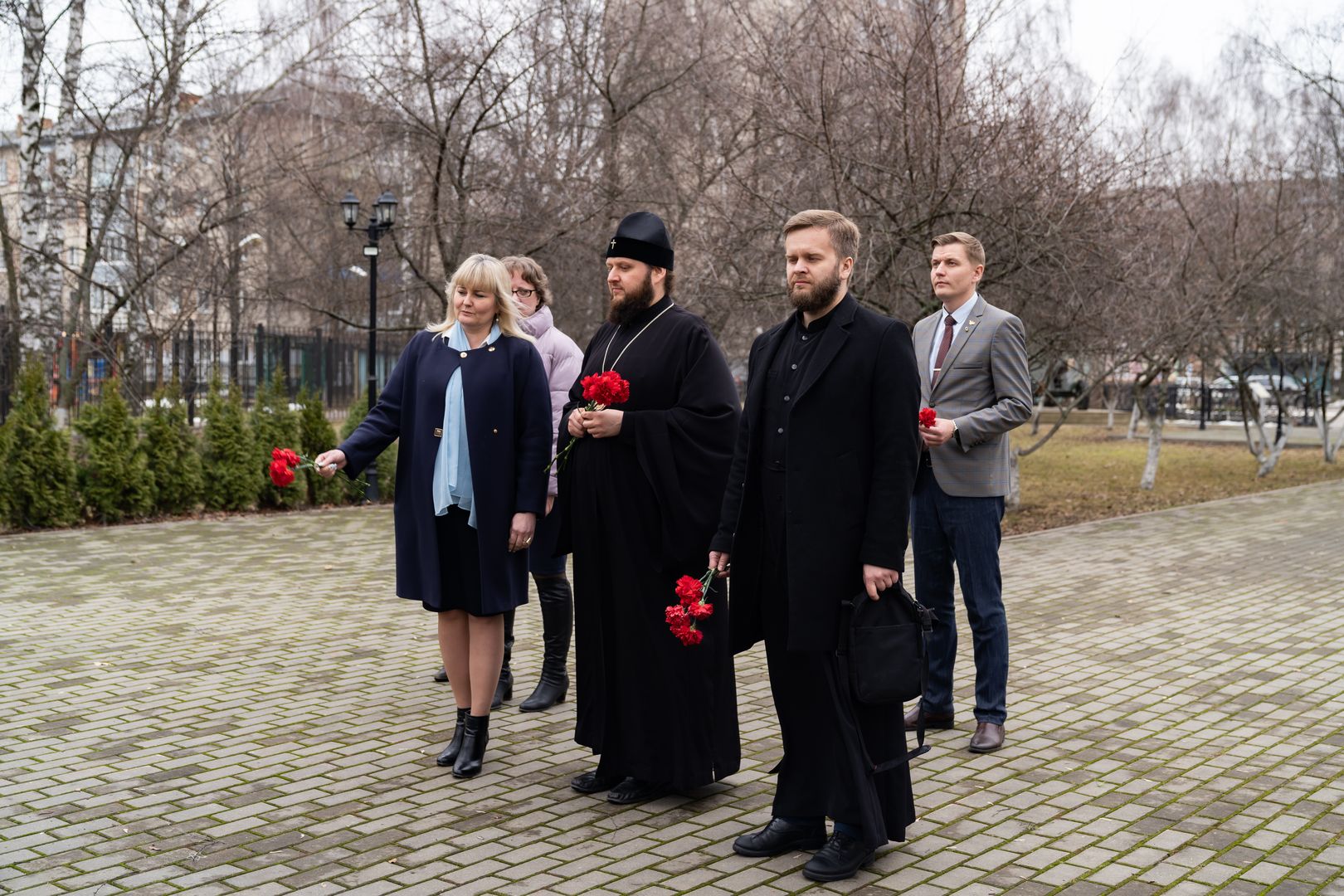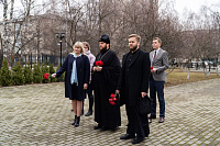 После общения с гимназистами архиепископ Аксий побывал в школьном музее и возложил цветы к памятнику Подольских курсантов.