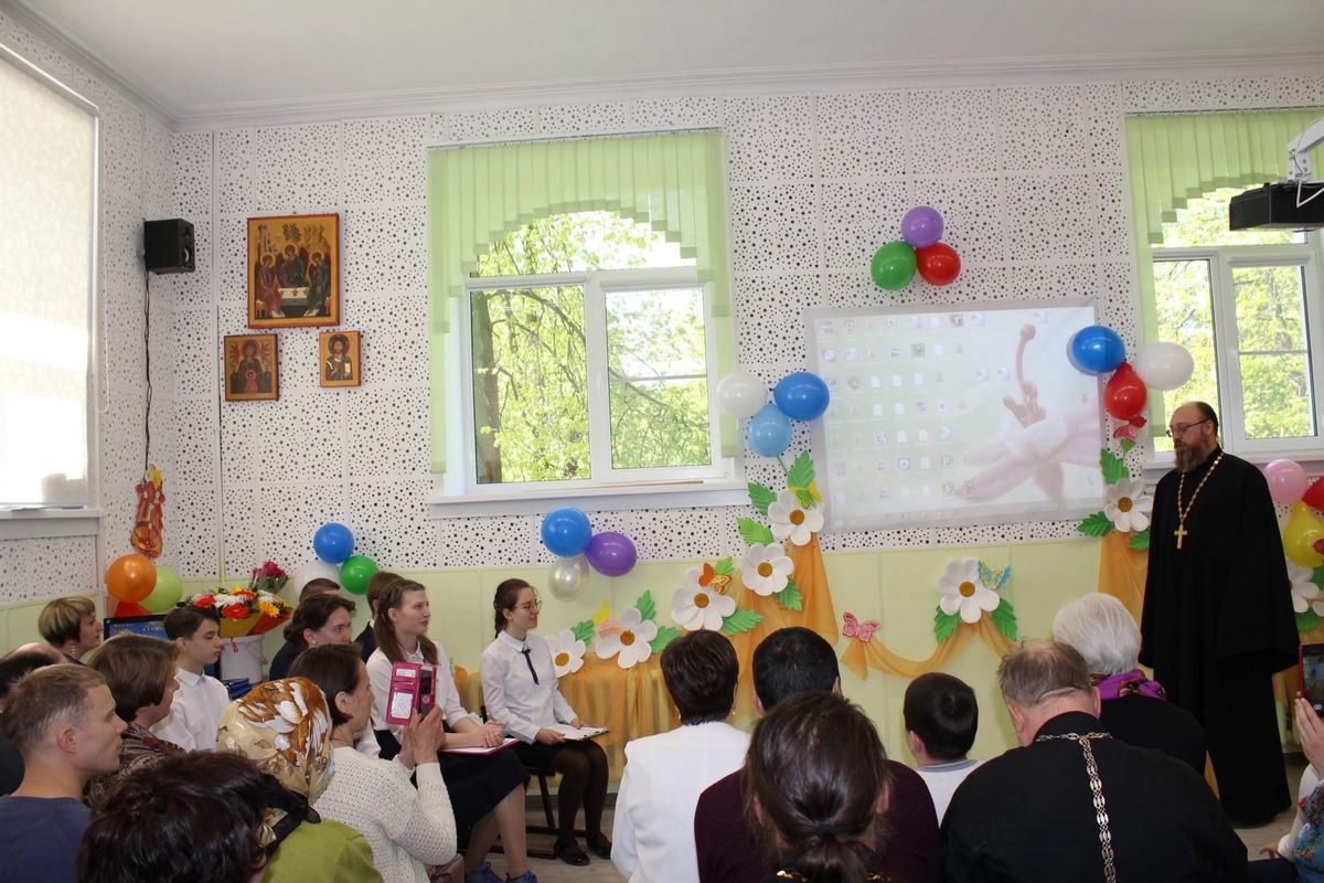 23 мая в православной гимназии «Одигитрия» г. Дубны на торжественной линейке прозвенел последний звонок для выпускников 9 и 11 классов. Ребят напутствовал священник Леонид Салтыков, настоятель Пантелеимоновского храма. Выпускников поздравили директор гимназии С. В. Жегалина, духовник гимназии иерей Антоний Попов, клирик храма Смоленской иконы Божией Матери, педагоги и родители.