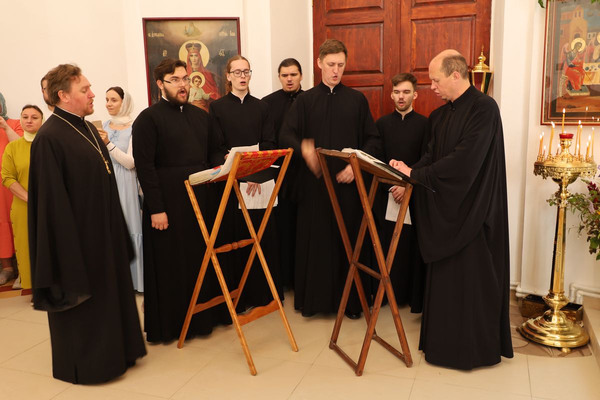 Богослужебные песнопения исполнил хор Коломенской духовной семинарии под управлением диакона Николая Глухова.