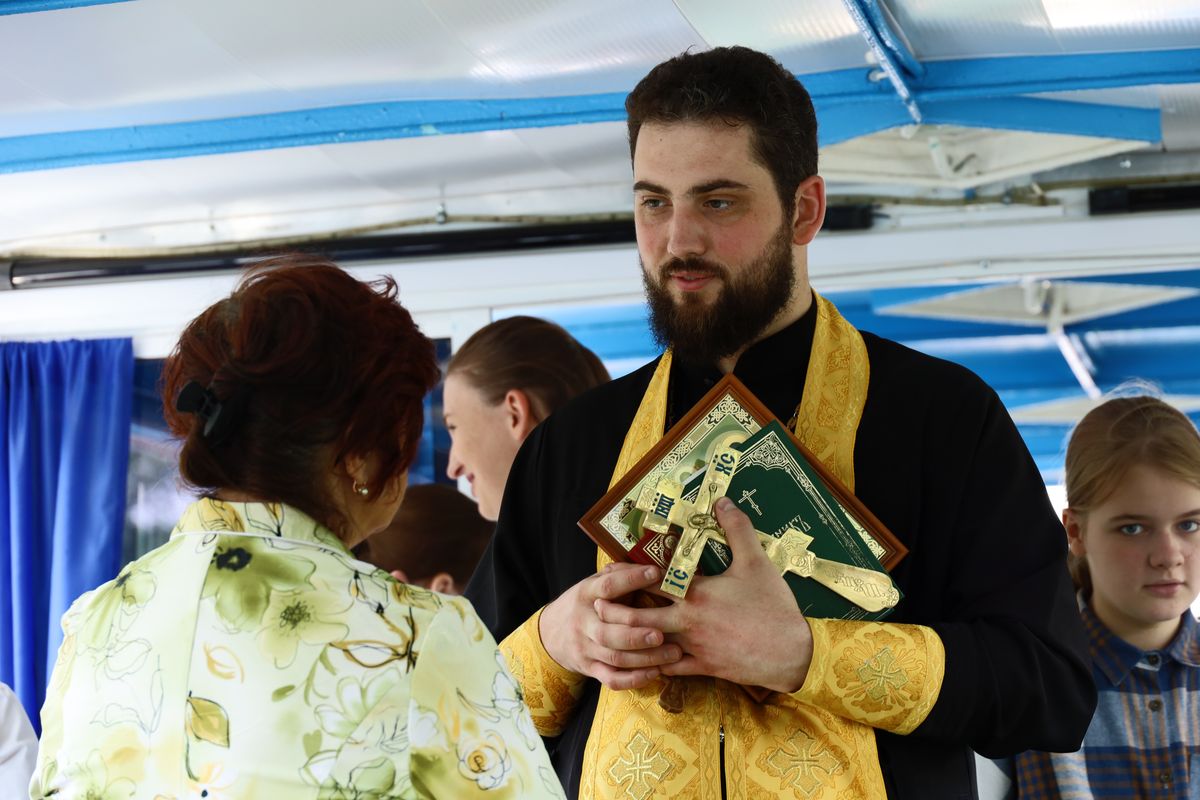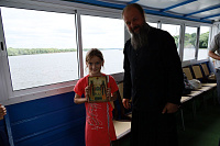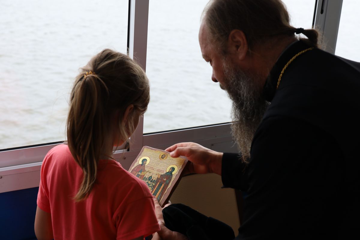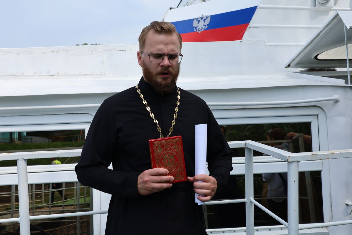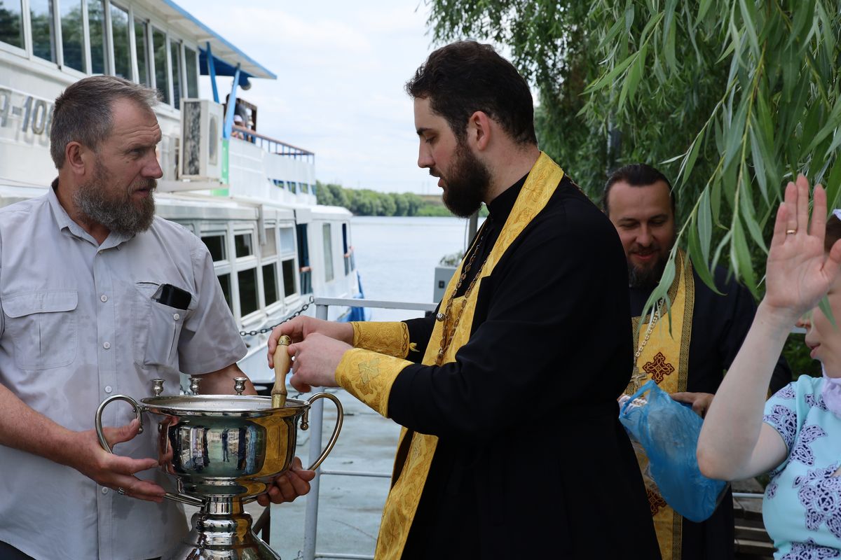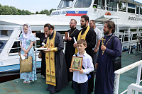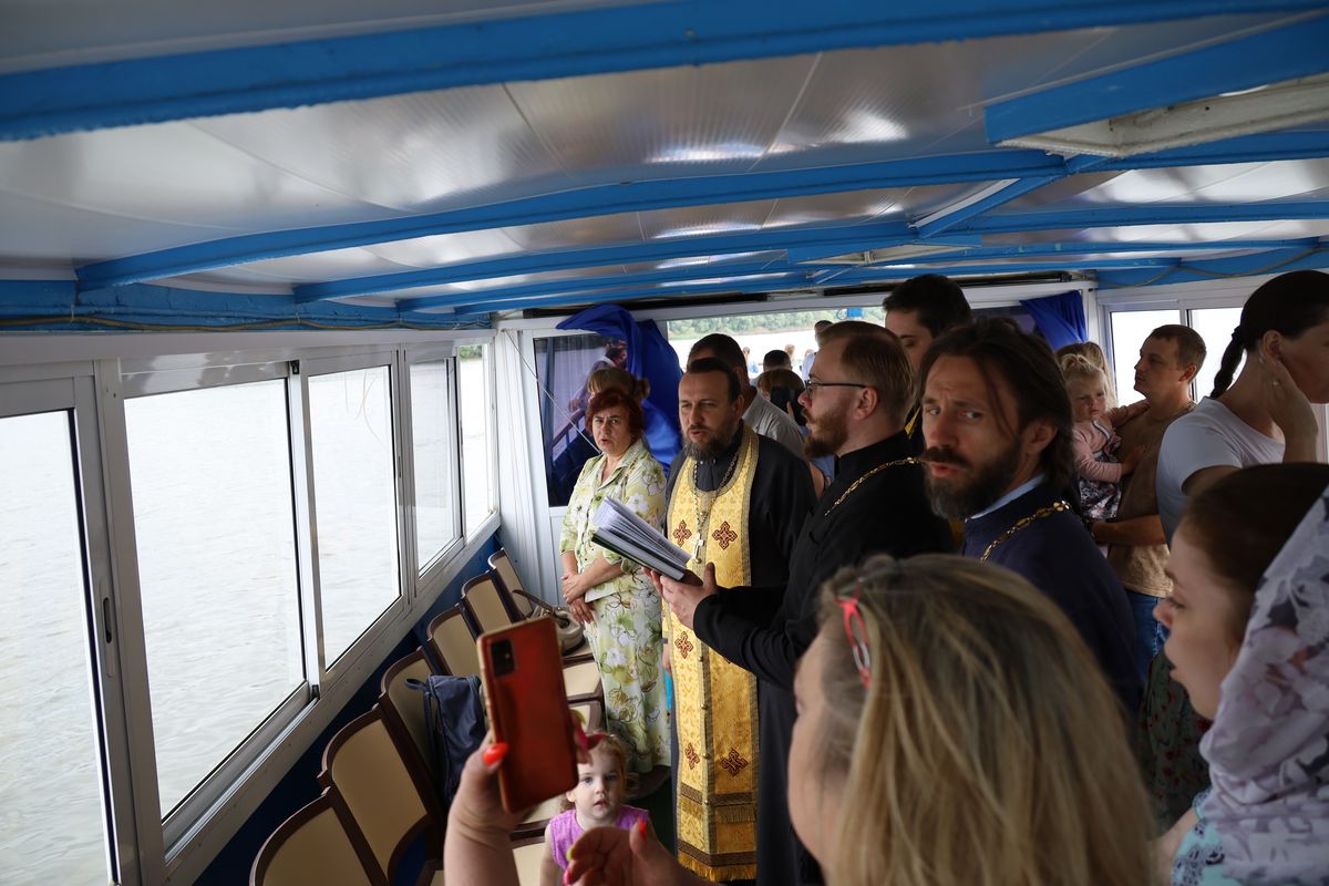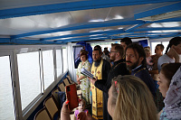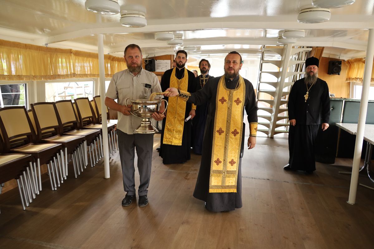 Перед отплытием духовенство соборно освятило теплоход. Чин освящения совершили протоиерей Владимир Пахачев, иерей Виктор Волков, иерей Александр Сирин, иерей Иоанн Парфёнов и иерей Василий Нелидкин.