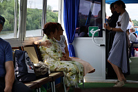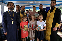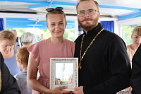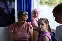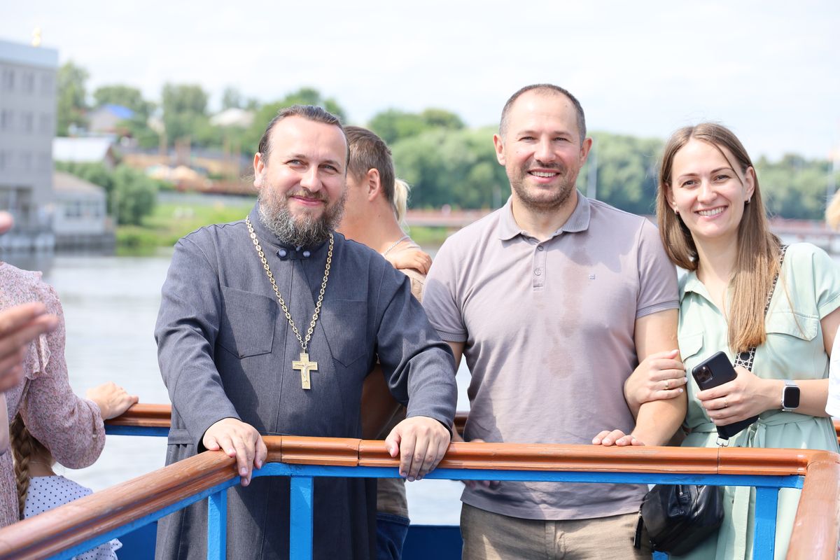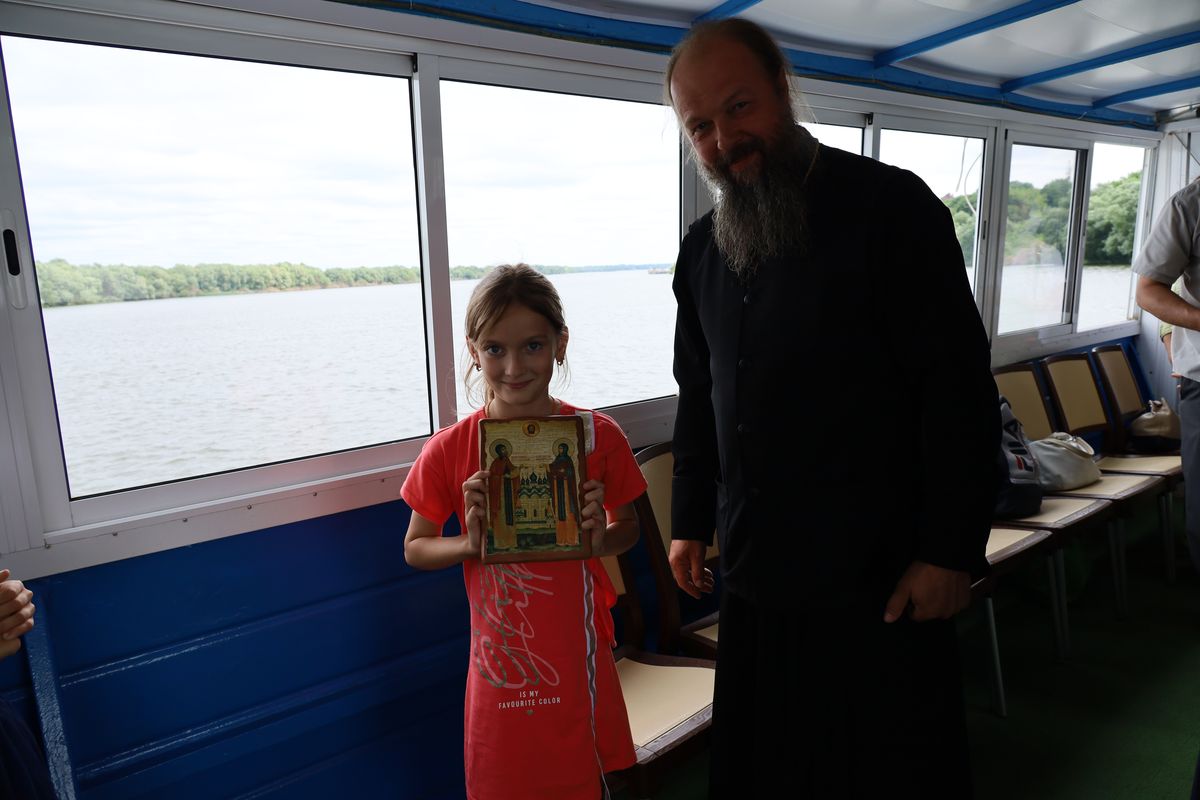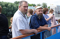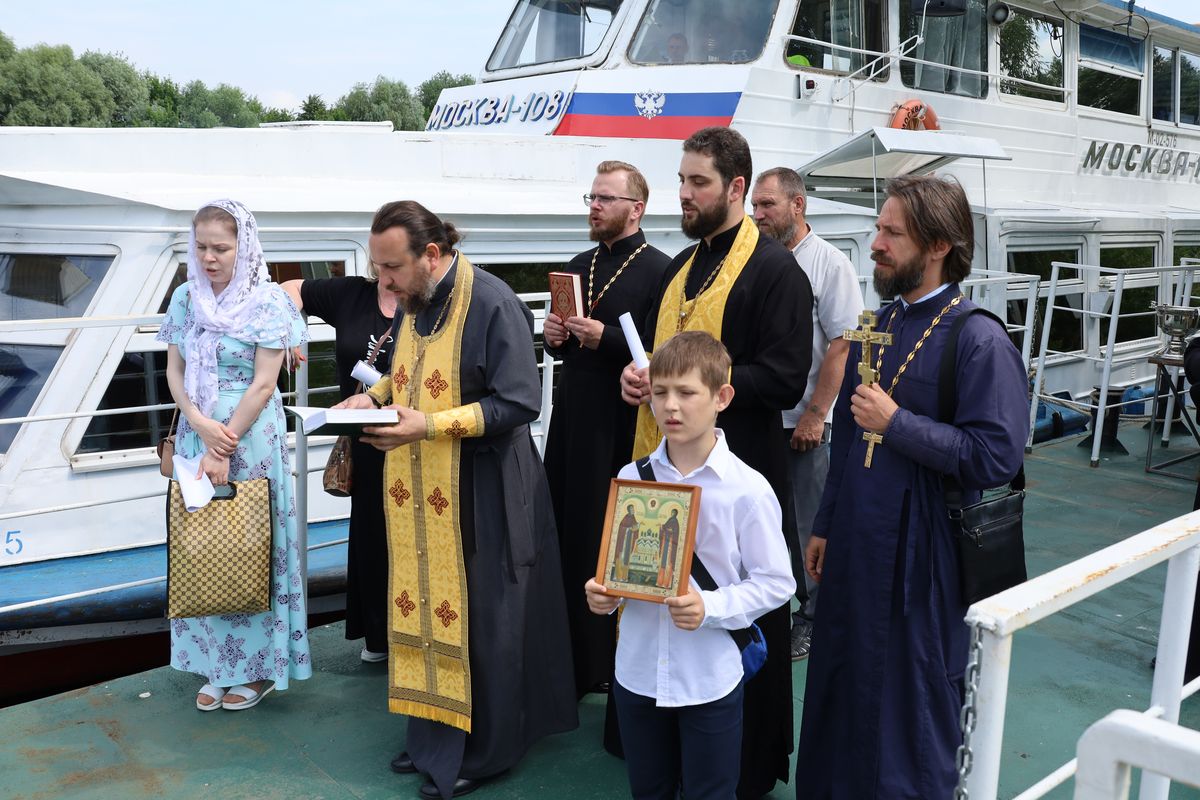 По пути следования теплохода были соборно пропеты тропари храмам, мимо которых проплывали, а на стрелке (месте соединения Оки и Москва-реки) был отслужен молебен святым Петру и Февронии.