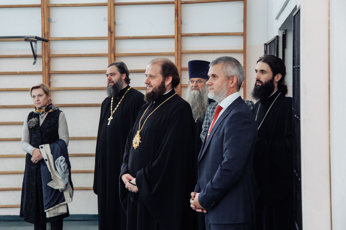 Его Высокопреосвященство сопровождали секретарь Подольского епархиального управления иерей Константин Семёнов, благочинный Домодедовского церковного округа иерей Андрей Дьячков, директор гимназии Е.О. Евдокимов и духовник гимназии протоиерей Александр Трушин.