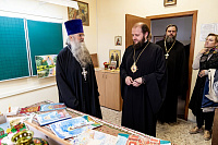 Преподаватели и учащиеся торжественно встретили правящего архиерея в фойе гимназии. Затем владыка посетил некоторые классы общеобразовательного православного учреждения, познакомился с распорядком учебного процесса и пообщался со школьниками.
