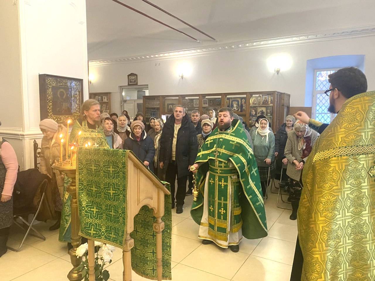 За богослужением пел хор Коломенской духовной семинарии под управлением диакона Николая Глухова.