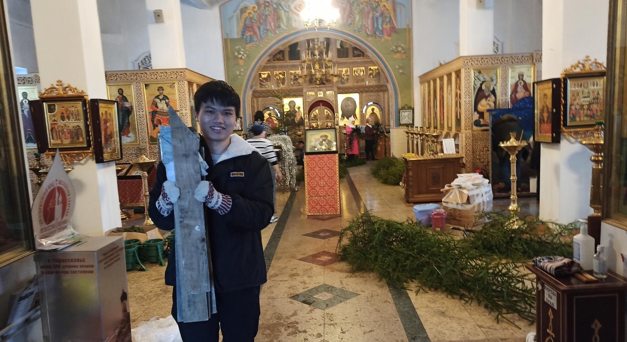 3 января студенты из Мьянмы, Сирии, Вьетнама и Пакистана, учащиеся Московского физико-технического института, приняли участие в украшении к празднику Рождества Христова Свято-Духовского храма деревни Дубровки Яхромского благочиния. Юноши и девушки помогли расставить и нарядить ёлки в храме и на территории возле него, а также сделали снежный Рождественский вертеп.