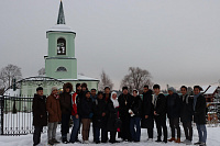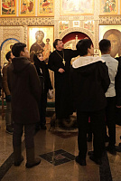 По окончании работы настоятель храма протоиерей Димитрий Колупаев рассказал гостям об истории, архитектуре и реставрационных работах в храме. Затем все желающие поднялись на колокольню, где смогли послушать звон и сами позвонить в колокола. Закончилась встреча трапезой в воскресной школе.