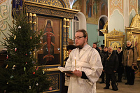 За богослужением клирик собора диакон Павел Бычков за усердное служение к празднику Рождества Христова был удостоен права ношения двойного ораря.