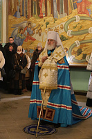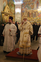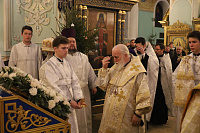 Богослужебные песнопения исполнил соборный хор под управлением Наталии Камышниковой.
