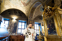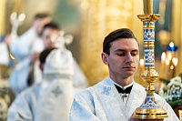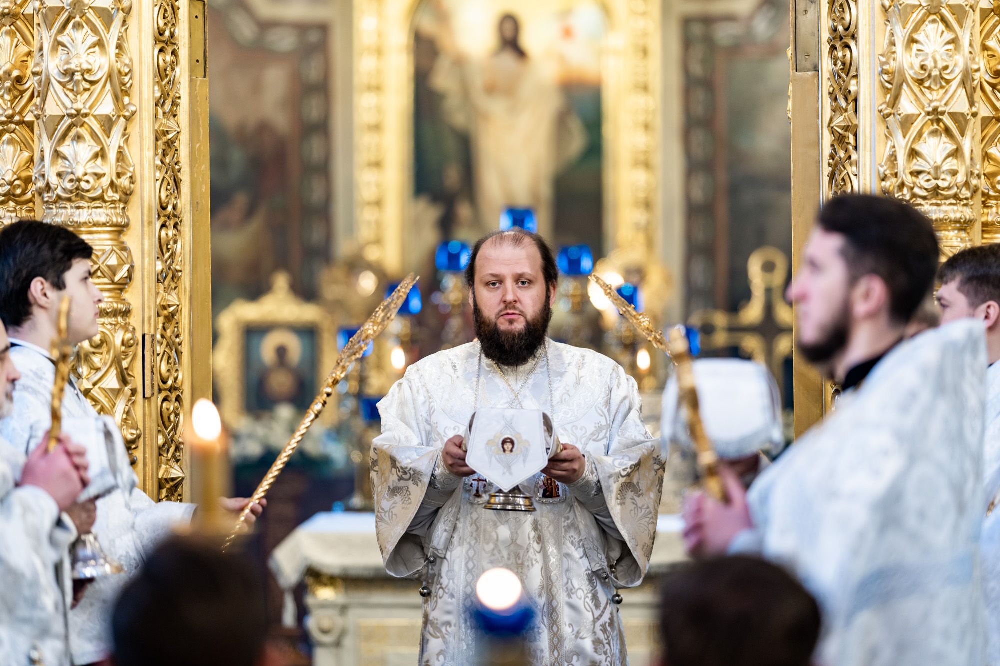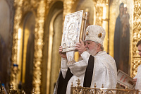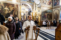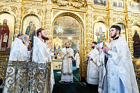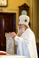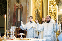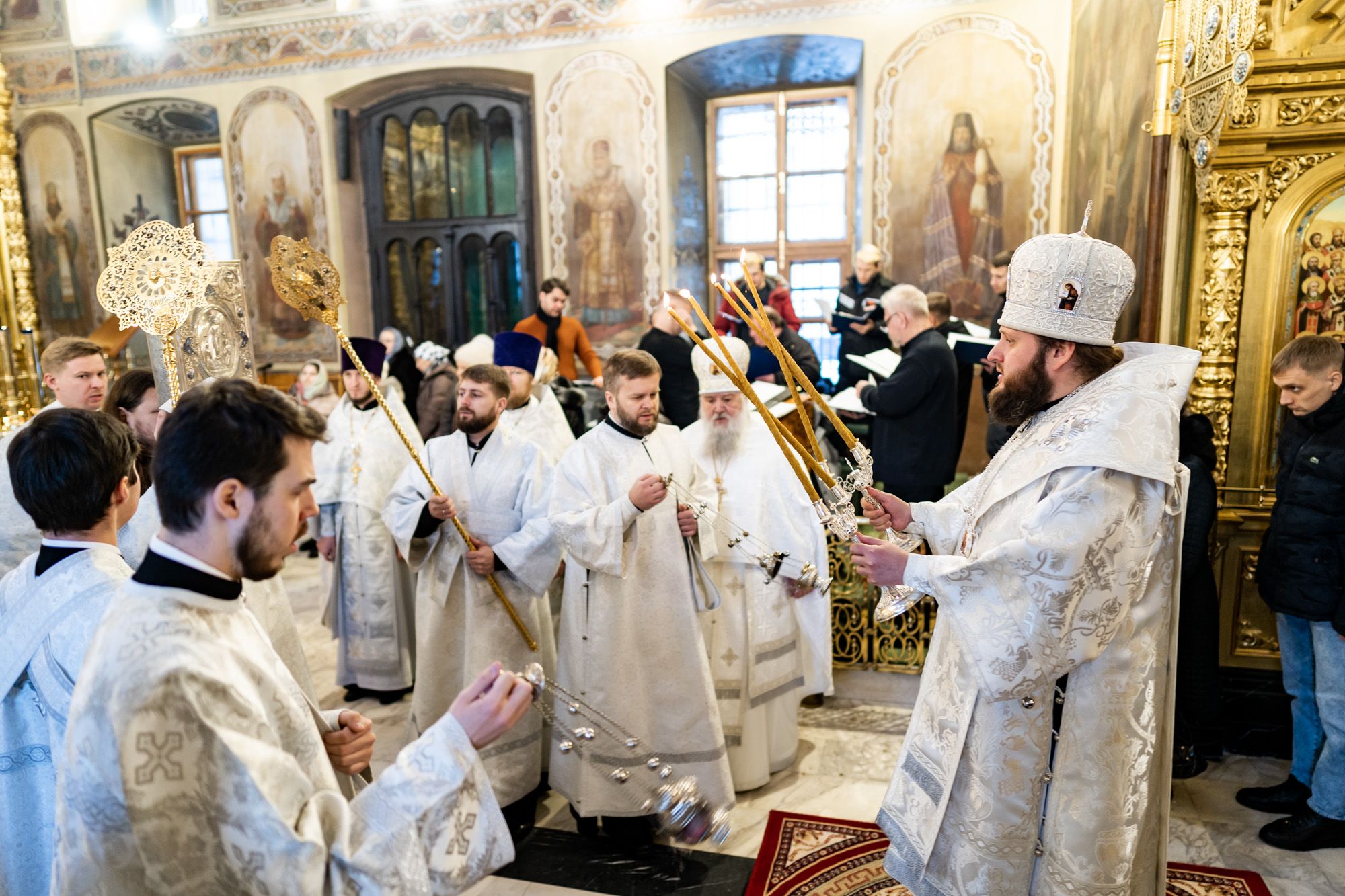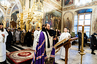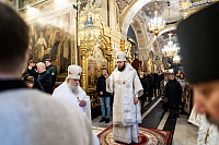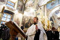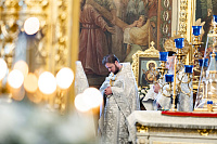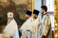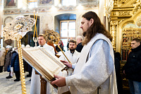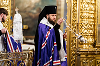 После сугубой ектении была вознесена молитва о Святой Руси. Богослужебные песнопения исполнил архиерейский хор под управлением Александра Веретенникова.