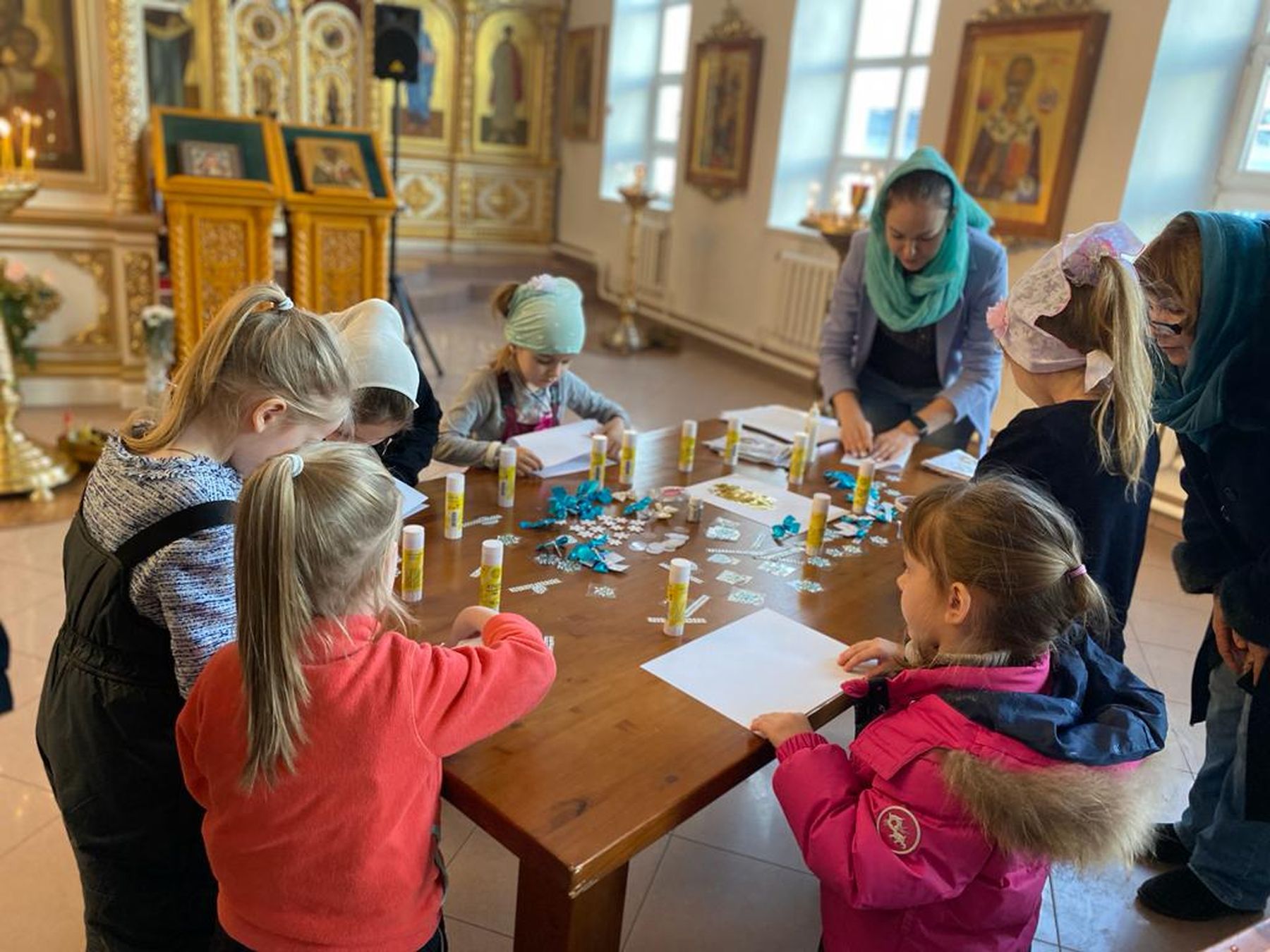 Для детей в храме проводились различные мастер-классы по рисованию и созданию аппликаций.