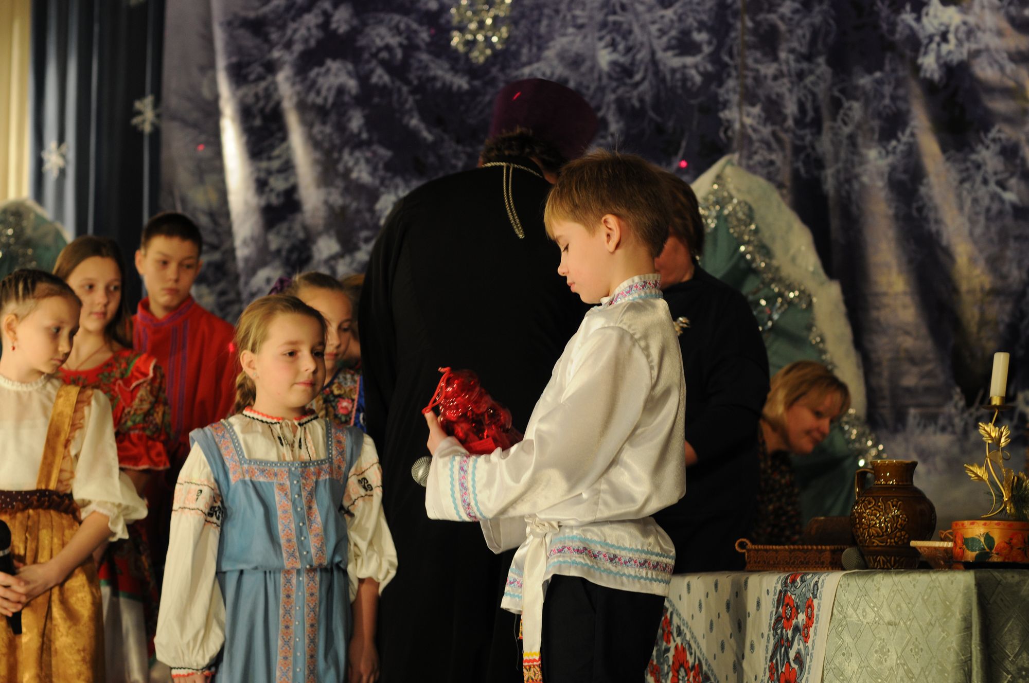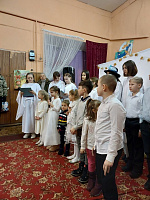 В рамках празднования Рождества Христова и святок 14 января воскресная школа Покровского храма с. Никоновское совместно с МУК ДК «Северянка» выступила на сцене Дома Культуры с театрализованным концертом «Марюткино Рождество». Почетным гостем на мероприятии был благочинный 2-го Бронницкого благочиннического округа иерей Алексий Розов. По окончании концерта благочинный обратился к участникам зрителям с поздравительным словом. Настоятель Покровского храма иерей Алексий Твердов поблагодарил участников и организаторов и вручил подарки детям - ученикам и взрослым - руководителям Воскресной школы и Дома Культуры. Отдельные слова поддержки были обращены детям, чьи отцы были мобилизованы для участия в СВО. Этим ребятам также были вручены подарки. Всего на концерте в Никоновском присутствовало около 50 человек.