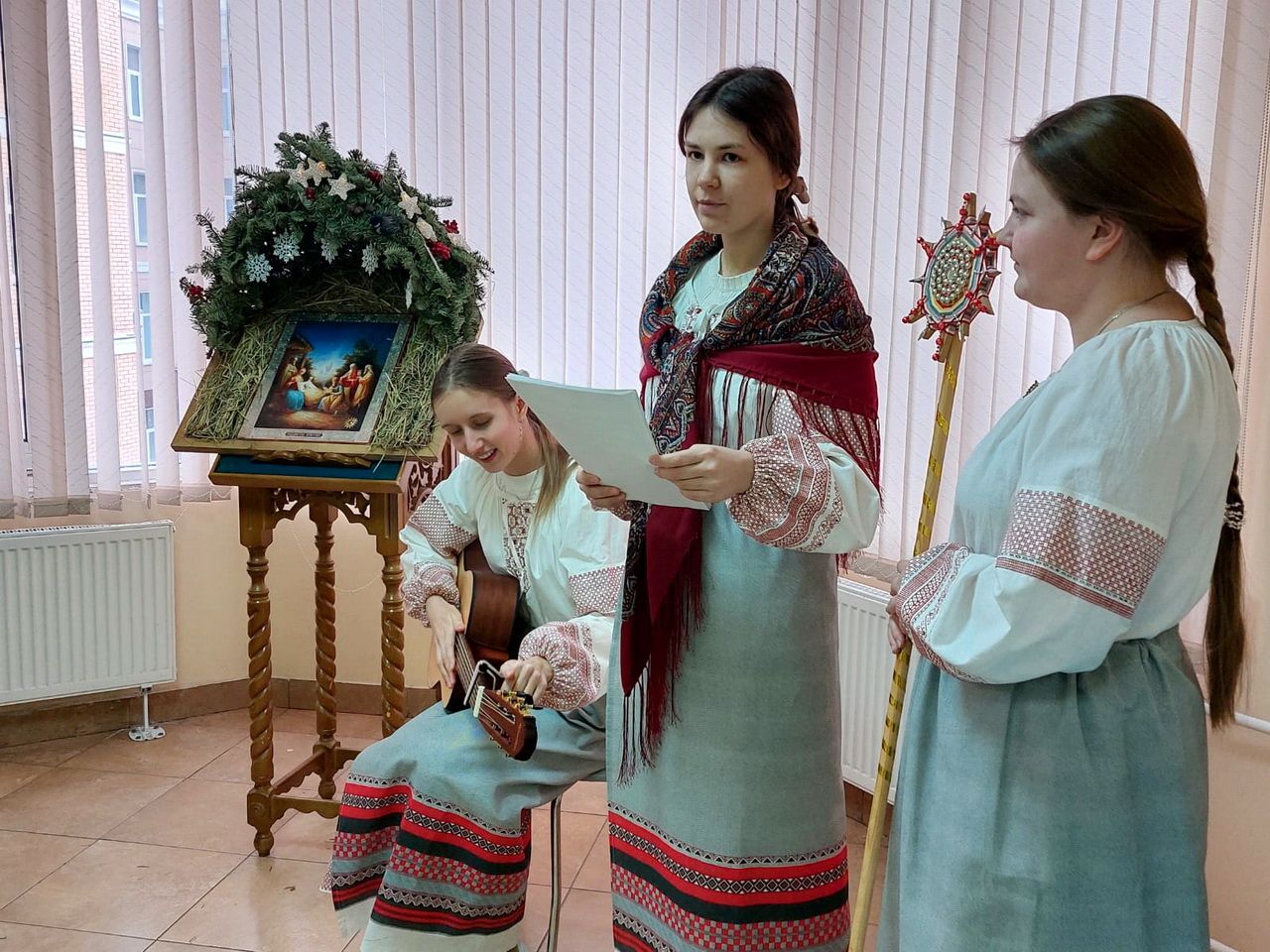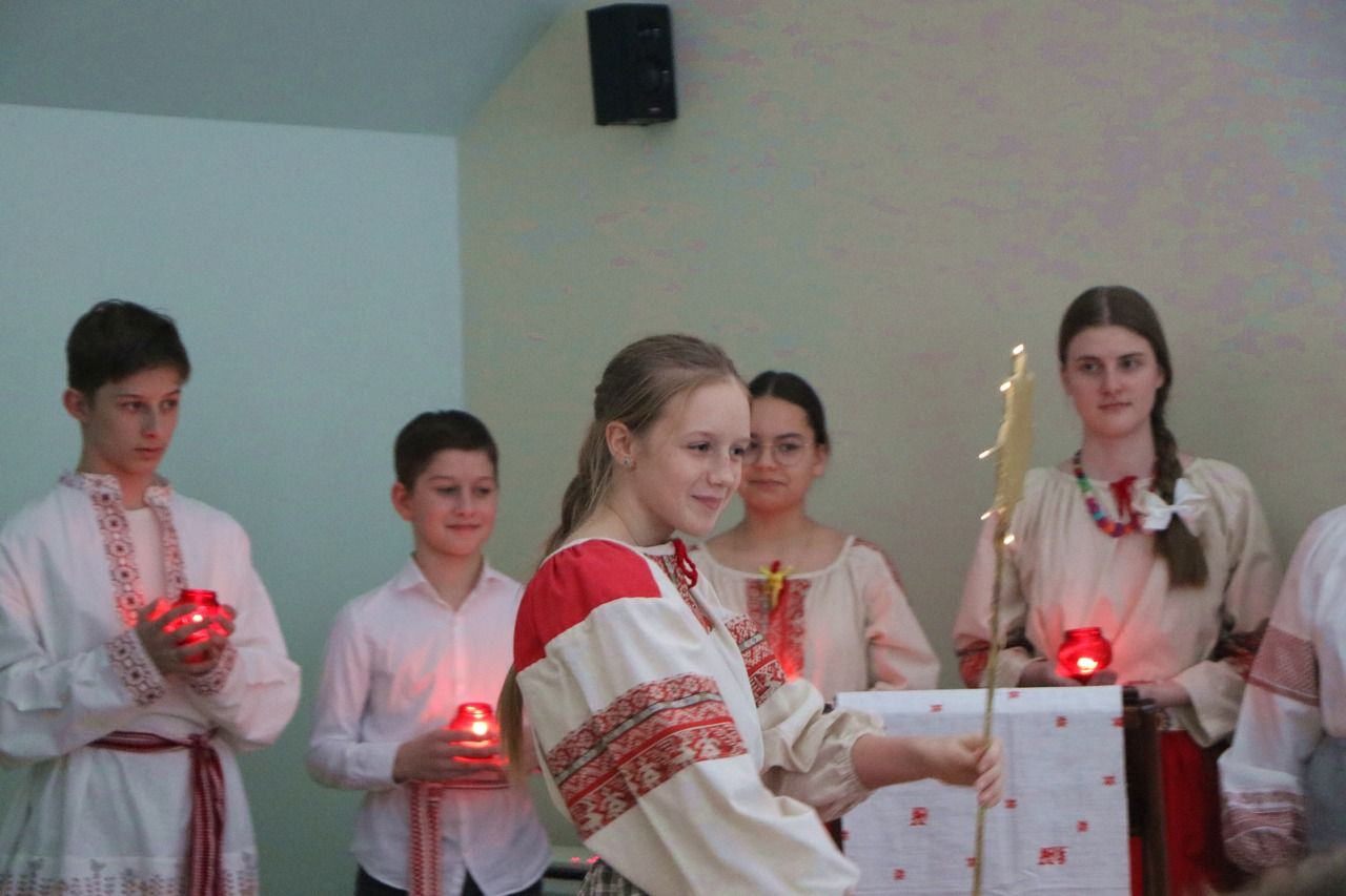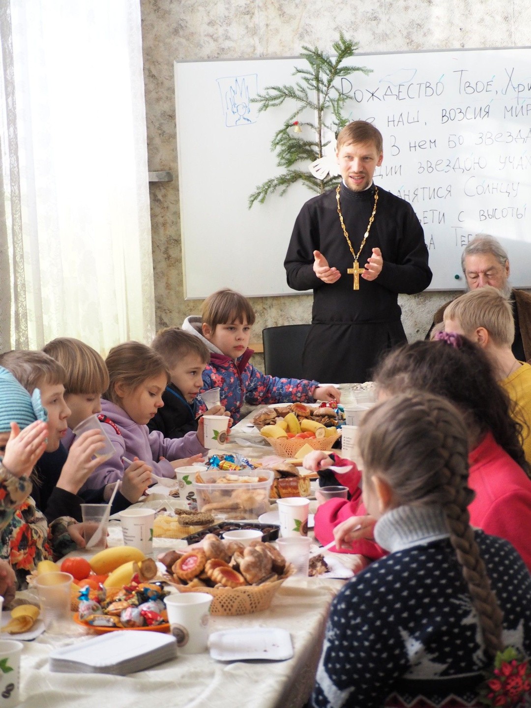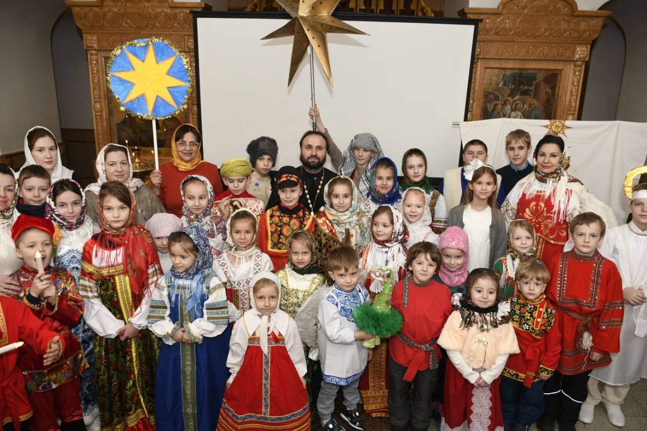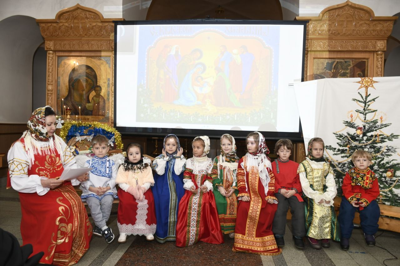 В тот же день в воскресной школе Георгиевского храма состоялся детский утренник, в ходе которого воспитанники читали стихи о празднике, а также показали мини-спектакль "Рождественская колядка".