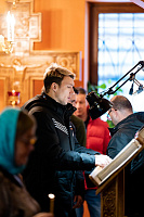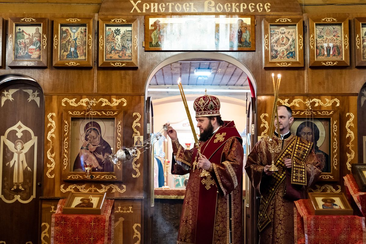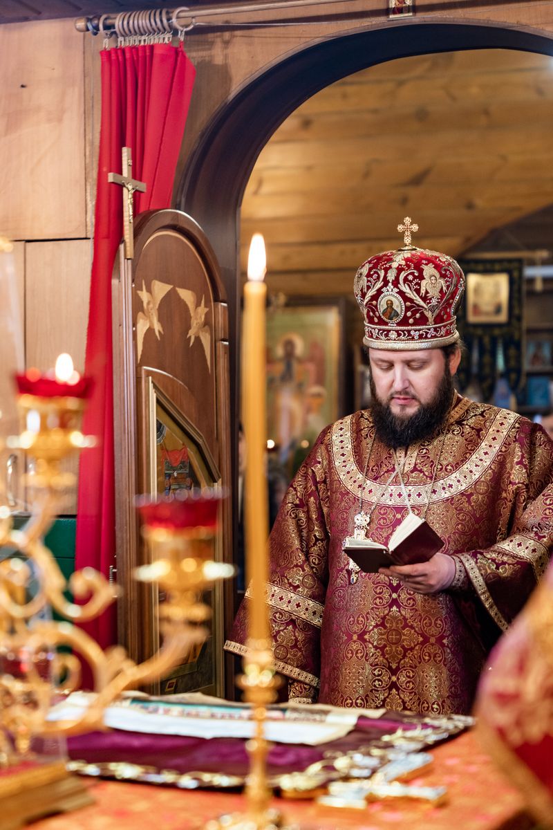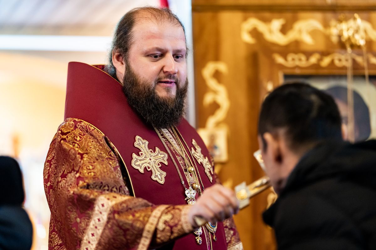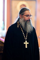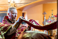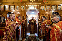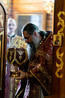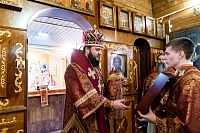 По окончании литургии настоятель храма иерей Андрей Саломасов обратился к правящему архиерею с приветственным словом и поблагодарил его Высокопреосвященство за совершённое богослужение.