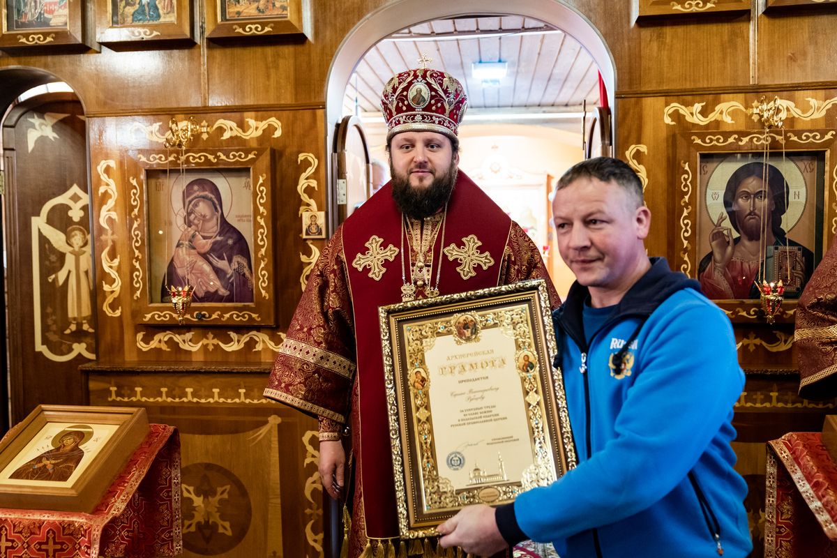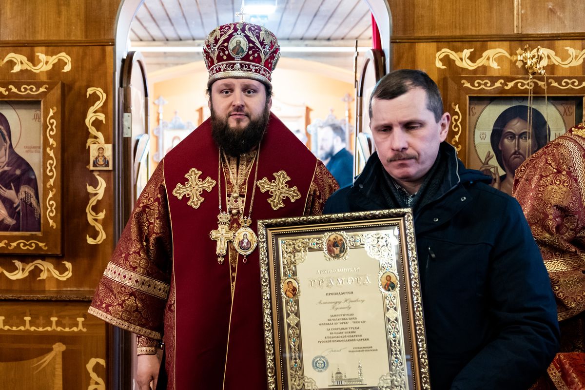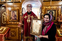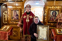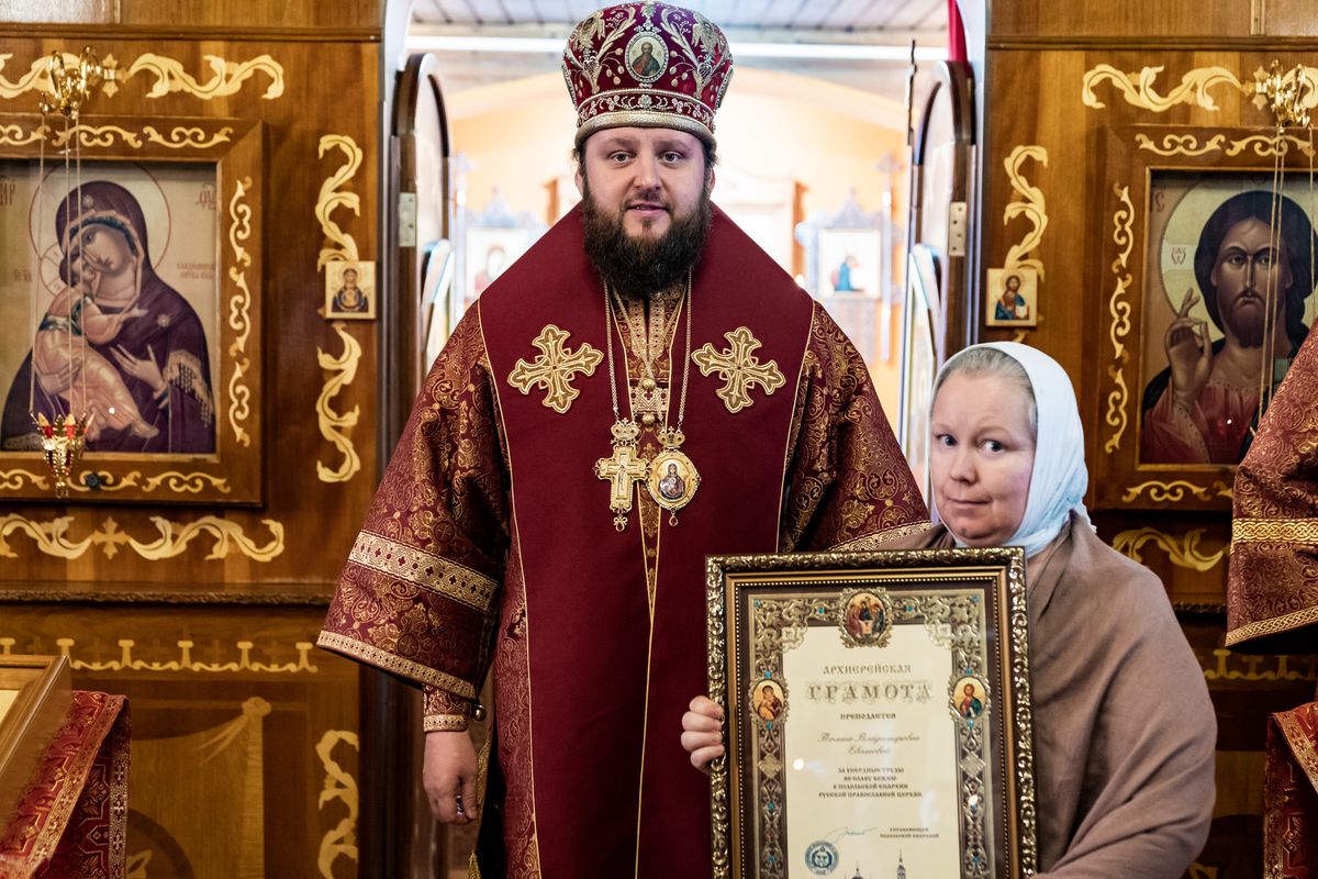 После проповеди владыка наградил Архиерейскими грамотами активных прихожан Благовещенского храма.