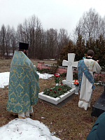 Прошел многолюдный крестный ход с остановкой возле могилы настоятеля протоиерея Виктора Паршинцева, почившего в 2007 году. Отец Павел совершил литию.