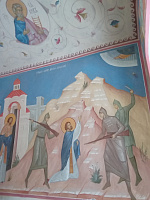 Символично, что в праздник Похвалы Пресвятой Богородицы произошло еще одно важное событие – завершение росписи храма. Росписи – тоже своего рода песнопение в честь Царицы Небесной и Господа, но только во фресках. Как сказал благочинный протоиерей Павел Мурзич, «благодаря трудам замечательных, старательных, богобоязненных иконописцев, трудам жертвователей, мы, глядя на росписи, можем оторваться от суеты мира и прилепиться к радости мира духовного». Особенно это важно для детей, ведь они «смогут явственно лицезреть ожившее во фресках Евангелие, оживший акафист Похвалы Божией Матери, ожившие жития святителя Николая и пророка Божия Илии». Смогут увидеть фреску, посвященную недавнему историческому событию – годам гонений на Церковь, и дубненскому святому новомученику Михаилу Абрамову, расстрелянному в 1937 году.