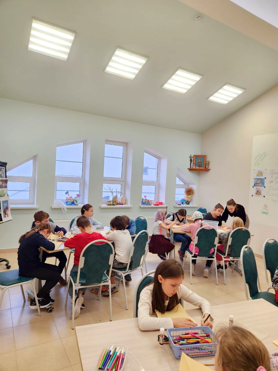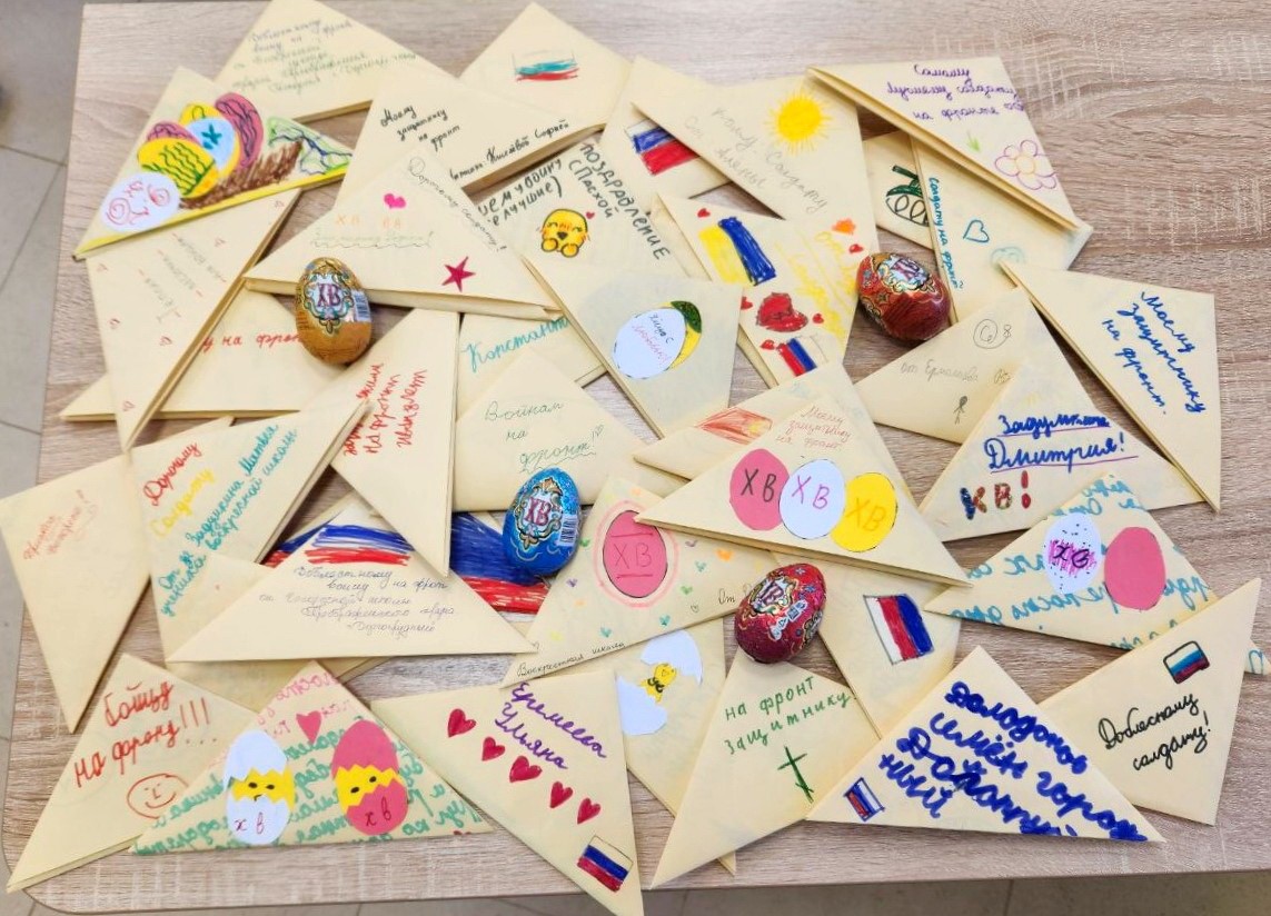 2 апреля, в воскресенье, воспитанники старших классов воскресной школы участвовали в оформлении пасхальных поздравлений на фронт. Они делали это с большим вдохновением, ведь фронтовые письма от воскресной школы храма Преображения Господня г. Долгопрудного всегда доставляются именно землякам, воинам-участникам специальной военной операции.