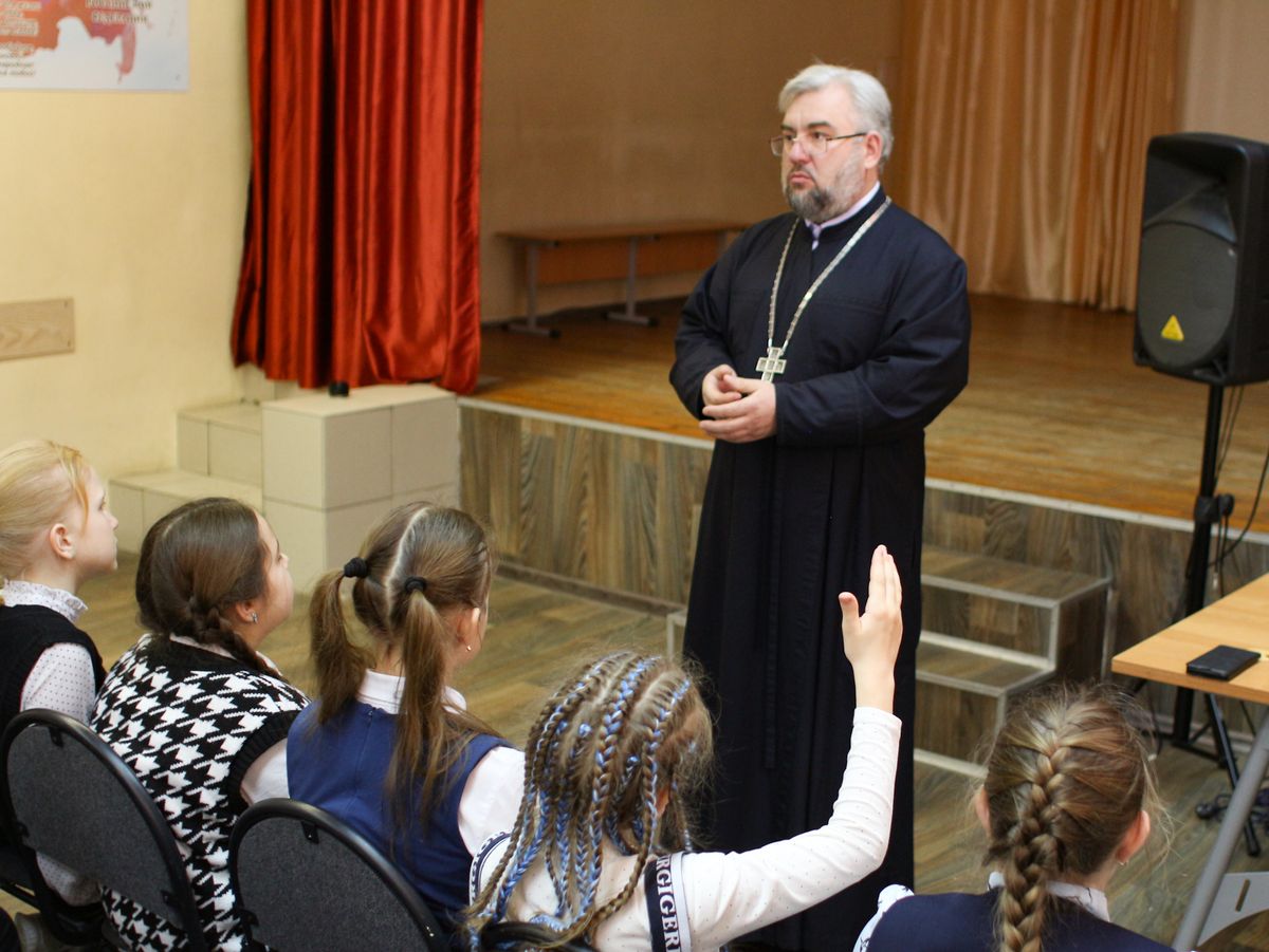 Настоятель храма Всех святых в земле Российской просиявших встретился с учащимися 6-х, 7-х классов МОУ «СОШ №18» г. Белоозерский, 8-х, 9-х классов МОУ «Лицей №23», и МОУ «Цибинская СОШ».