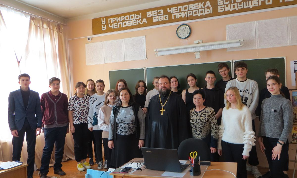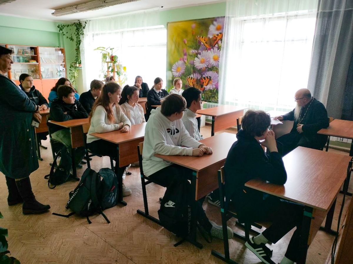 Настоятель Крестовоздвиженского храма протоиерей Алексий Крылов провел беседу с учащимися 9-х классов «Косяковской СОШ».