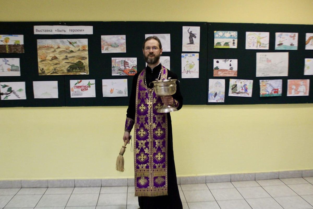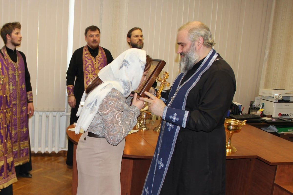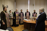 По окончании молебна отец Сергий пожелал директору и преподавателям Божией помощи в ответственном и непростом труде воспитания и обучения школьников, затем вручил Оксане Николаевне икону Пресвятой Троицы в благословение на предстоящие труды. В заключение встречи состоялось чаепитие, во время которого собравшиеся обсудили вопросы, связанные с духовным окормлением учителей и учащихся школы духовенством благочиния.
