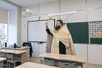 Отцу благочинному сослужили ответственный за религиозное образование и катехизацию в Павлово-Посадском благочинии протоиерей Димитрий Марухин и ответственный за духовное окормление школы священник Михаил Калинин.