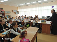 10 апреля клирик Георгиевского храма г. Долгопрудный священник Алексий Куприянов в очередной раз посетил гимназию № 13 и провел урок для учащихся пятых классов на тему «История и значение праздника Пасхи».
