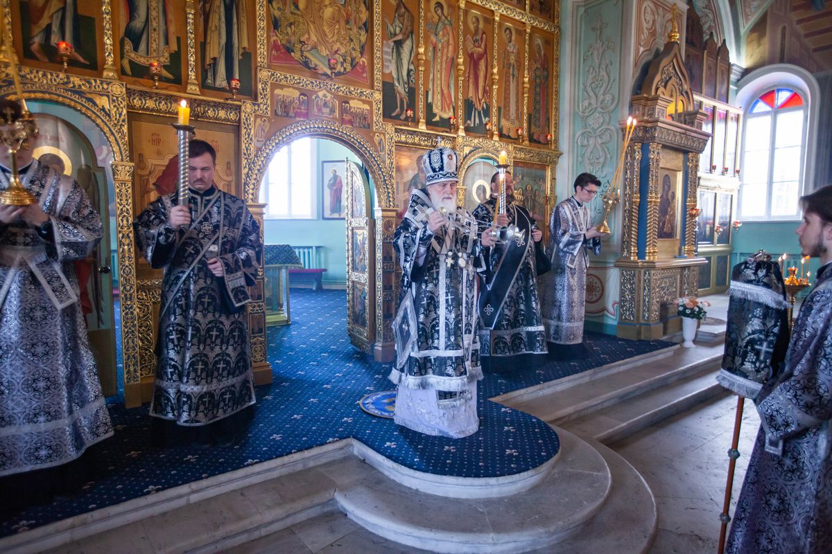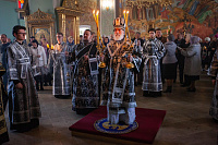 Перед поклонением Плащанице Спасителя Владыка обратился к духовенству и молящимся с архипастырским словом.