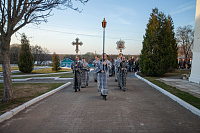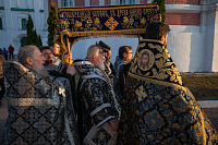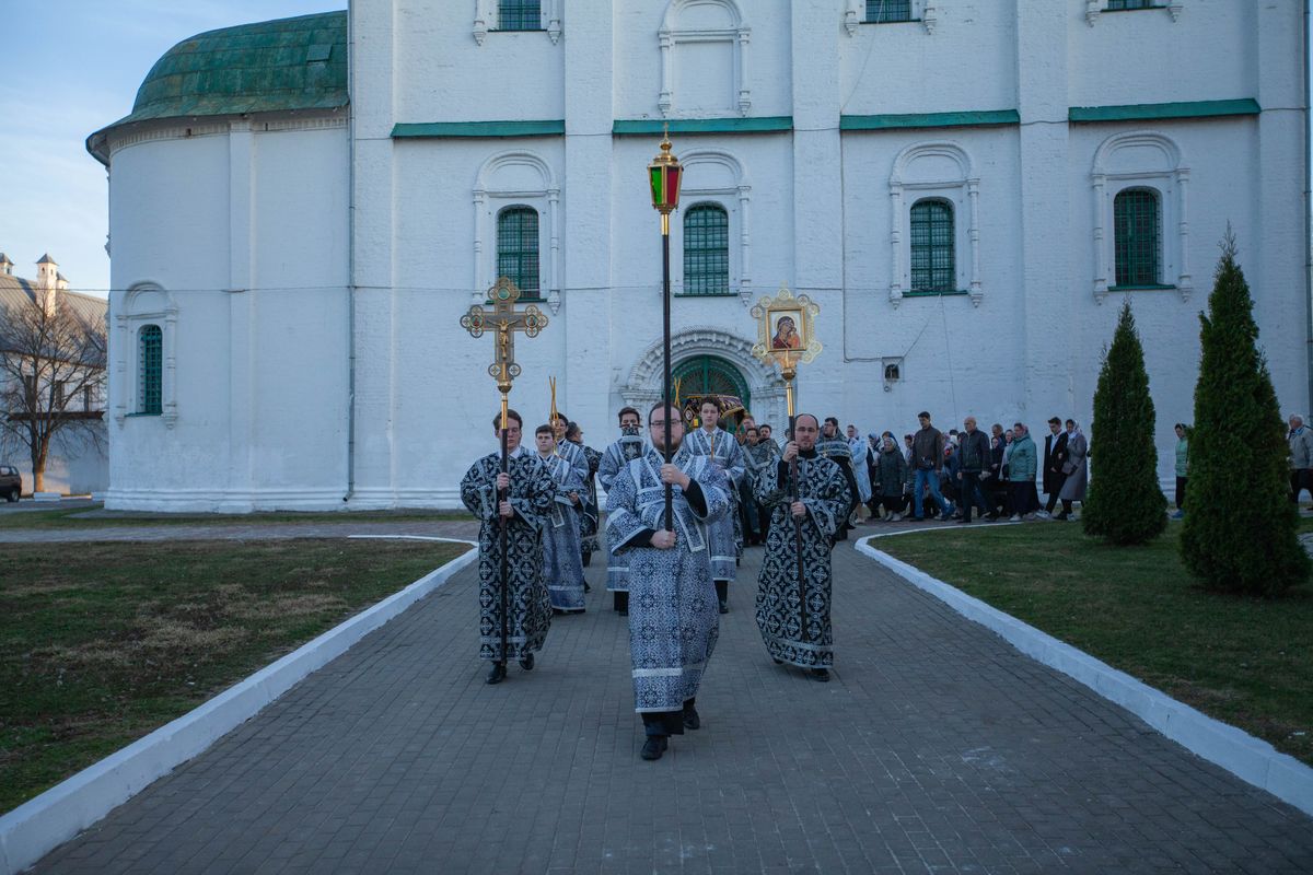 После великого славословия с пением погребального «Святый Боже» был совершен крестный ход с Плащаницей вокруг храма.