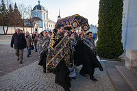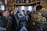 Богослужебные песнопения исполнил соборный хор под управлением Наталии Камышниковой.
