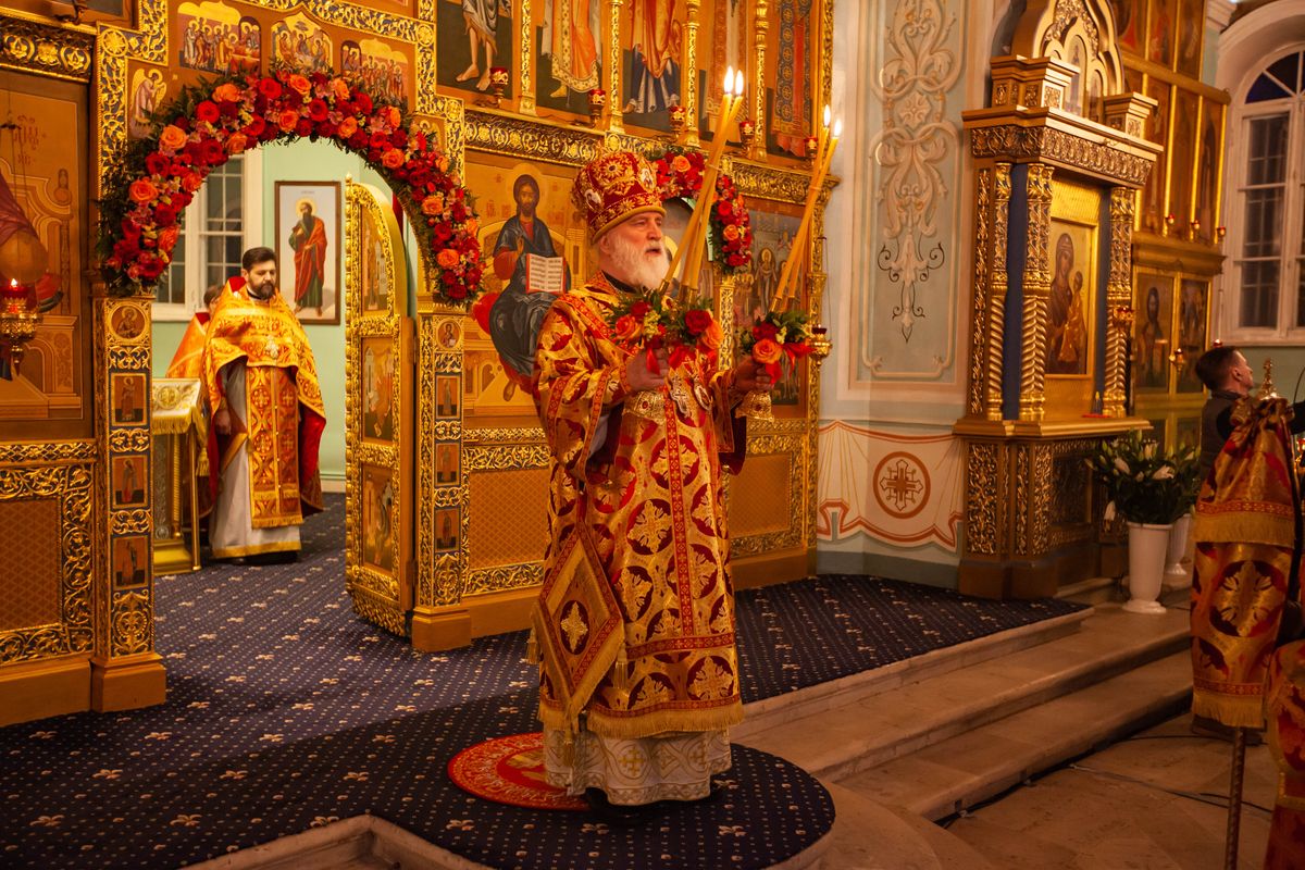 После чтения Евангелия митрополит Павел огласил Пасхальное послание Святейшего Патриарха Московского и всея Руси Кирилла.