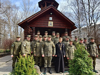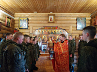 16 апреля клирик Преображенского храма иерей Алексий Купцов провел для военнослужащих войсковой части 52116 экскурсию по храму преподобного Серафима Вырицкого г. Долгопрудного.