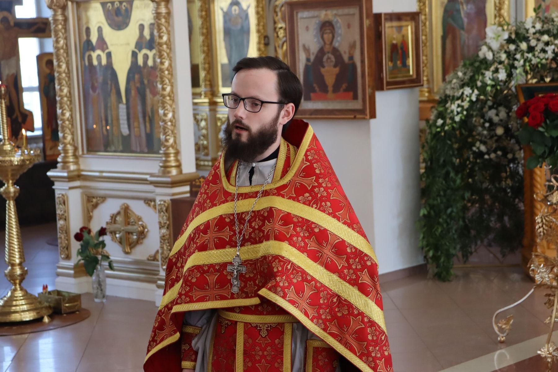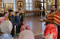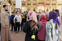 По окончании Божественной литургии и крестного хода клирик храма священник Роман Епихин рассказал ребятам об истории храма.