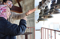 Экскурсию на колокольне продолжил клирик храма священник Павел Фролов, где каждый из ребят смог позвонить в колокола.