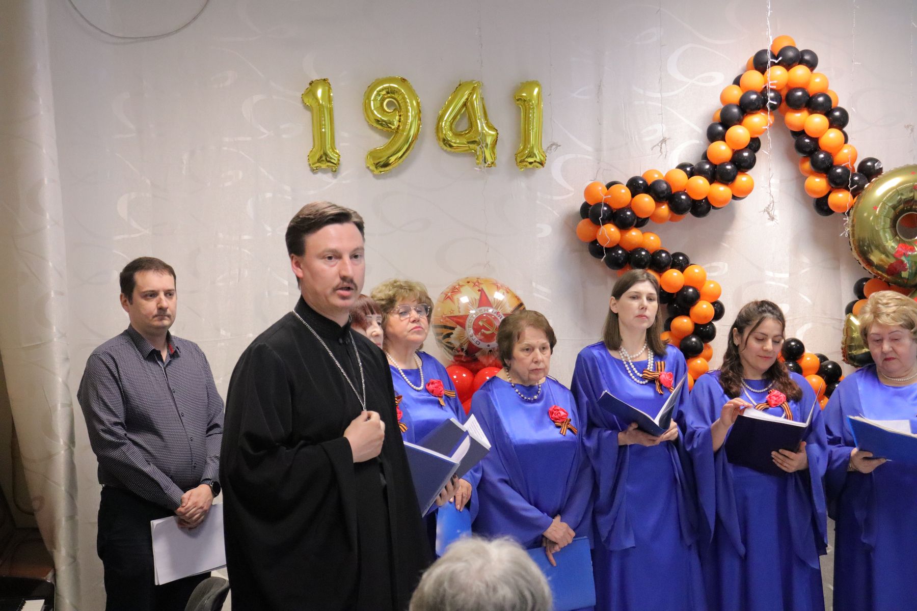 В исполнении самодеятельного академического ансамбля «Неопалимая Купина» (руководитель Н. Н. Комарова, концертмейстер А. Н. Коваленко) прозвучали песни военных лет, произведения патриотической и духовной направленности.