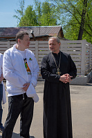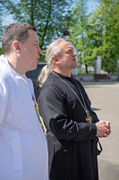 Почетных гостей, благоукрашавших Юсуповский сквер: прокурора Московской области Сергея Забатурина и работников аппарата прокуратуры Московской области, главу г.о. Долгопрудный Владислава Юдина с представителями администрации встретил настоятель храма протоиерей Алексей Шурупов. Он рассказал о судьбе церкви после революции и восстановлении порушенной святыни.