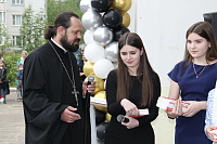 25 мая в школе №1 города Яхромы прозвучал последний звонок для выпускников одиннадцатых классов. В мероприятии принял участие клирик Троицкого собора города Яхромы протоиерей Александр Мошняга. Он поздравил выпускников и пожелал, чтобы те знания, которые ребята получили в школе, они бы могли применить для служения людям и своему Отечеству во славу Божию. После этой речи отец Александр подарил всем выпускникам Евангелие от Иоанна.