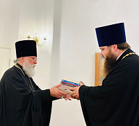 Клирик Христорождественского храма деревни Заозерье протоиерей Алексий Баранов, отметивший 30-летие иерейской хиротонии, от лица духовенства благочиния получил в дар набор Требников издательства Московской Патриархии.