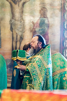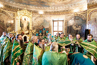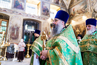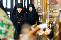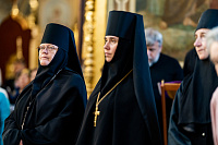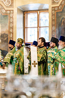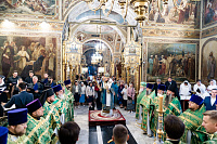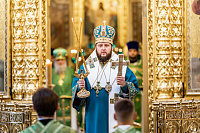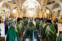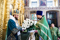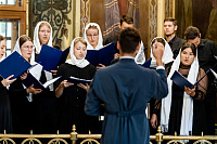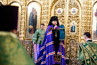 После сугубой ектении была вознесена молитва о Святой Руси. Богослужебные песнопения исполнил архиерейский хор под управлением Александра Веретенникова и хор Зачатьевского храма города Чехова под управлением Т.В. Исаковой.