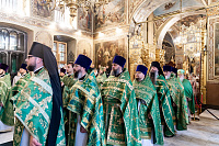 Его Высокопреосвященству сослужили: секретарь Подольского епархиального управления иерей Константин Семёнов, члены Епархиального совета, благочинные и духовенство Подольской епархии.