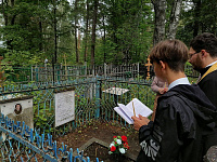 27 августа наставники и воспитанники православно-молодежного клуба "Очаг" при Александро-Невском храме побывали на Егорьевском городском кладбище. По сложившейся традиции молодые люди деятельно и молитвенно почтили память супруги и родных священномученика Андрея Ясенева, приведя в подобающий вид их место погребения. После благоустройства захоронений ответственный по работе с молодёжью в 1-м и 2-м Егорьевских благочиниях иерей Никита Чернышов совершил заупокойную литию.