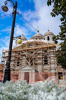8 сентября у стен Троицкого собора города Клин состоялось рабочее совещание благочинного Клинского церковного округа иерея Михаила Полякова с главой города Аленой Дмитриевной Сокольской и представителями администрации. На встрече обсуждались актуальные вопросы касающиеся восстановления собора. Также присутствующие ознакомились с ходом восстановительных работ и осмотрели роспись фронтона собора.