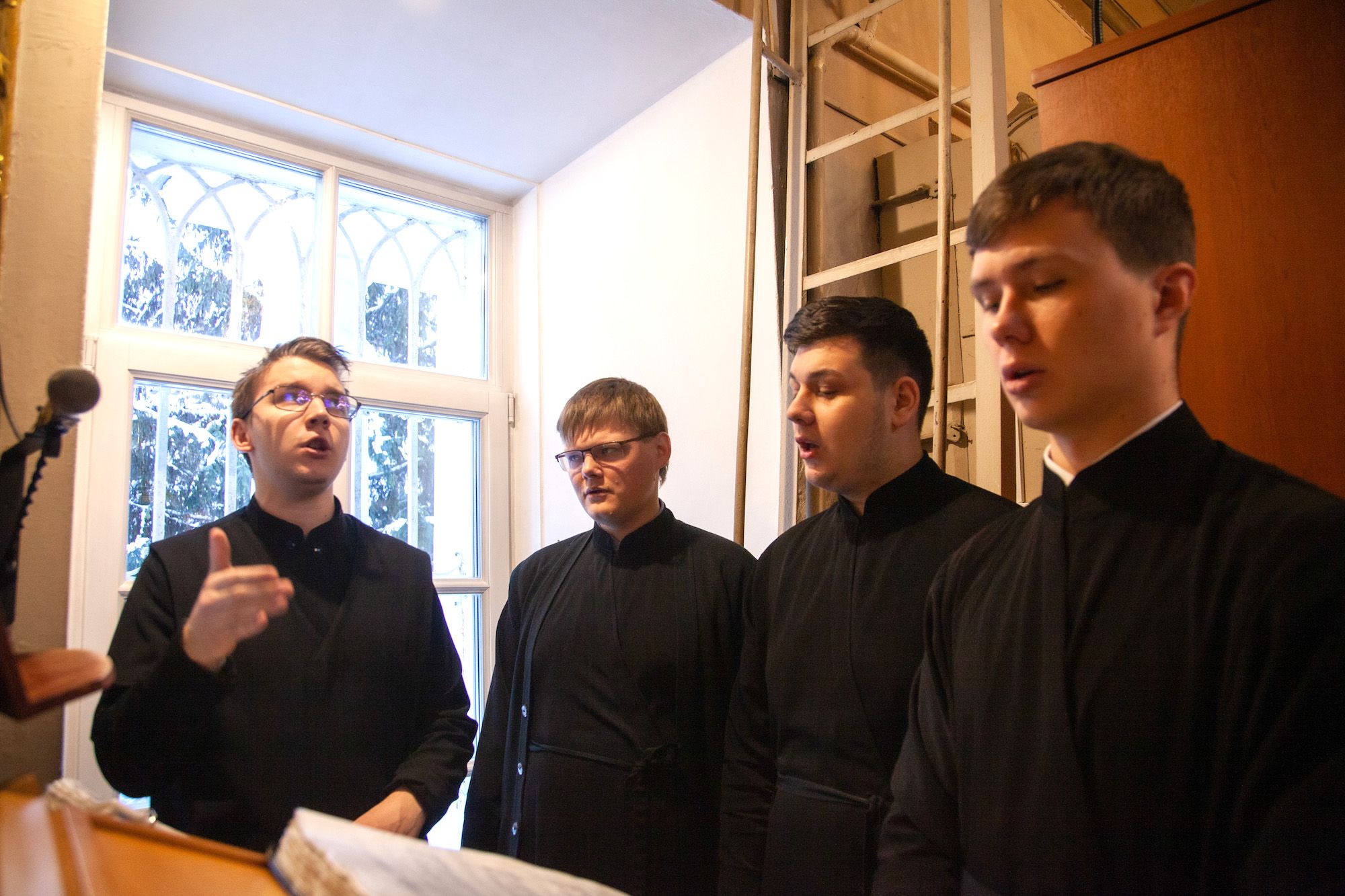 10 декабря Богоявленский храм города Коломны посетили студенты Коломенской духовной семинарии во главе с проректором по воспитательной работе иеромонахом Филаретом (Тихоновым) и заведующим заочным отделением иеромонахом Алексием (Куклевым).