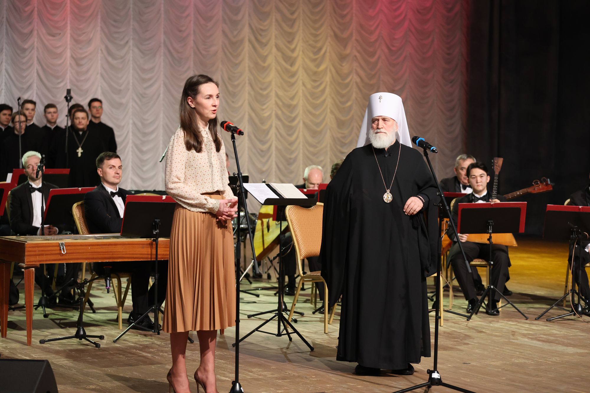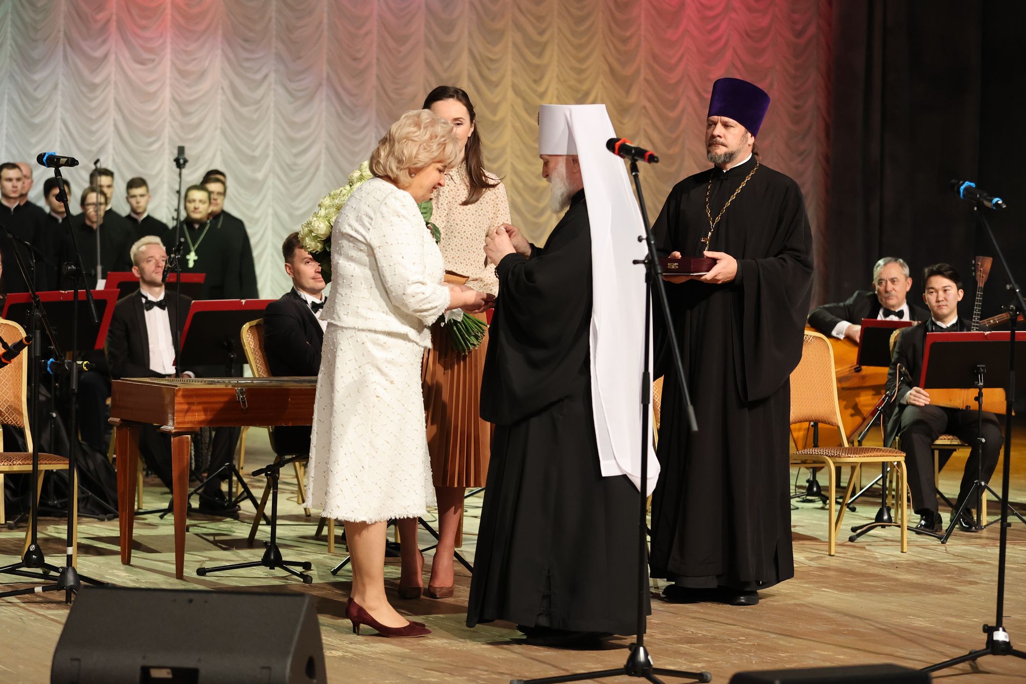 В концертной части мероприятия прозвучали номера, подготовленные хором духовенства Московской митрополии под управлением иерея Сергия Голева и Государственным академическим русским народным ансамблем «Россия» имени Людмилы Зыкиной под руководством главного дирижёра заслуженного артиста РФ Дмитрия Дмитриенко.