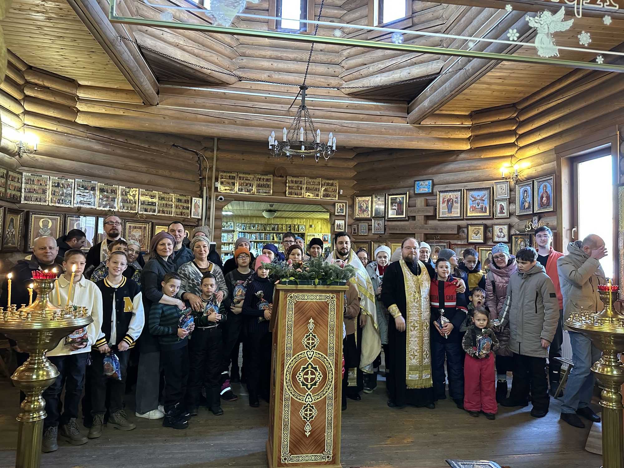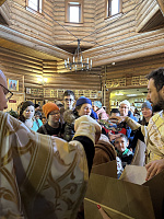 По окончании богослужения духовенство храма свт. Николая Чудотворца поздравило всех присутствовавших с совершенным Таинством и вручило детям Рождественские подарки.