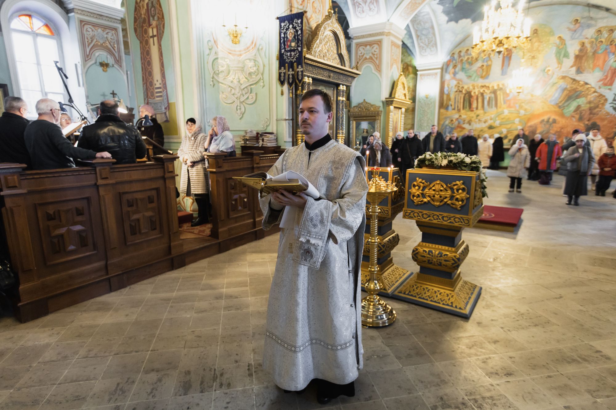 Богослужебные песнопения исполнил соборный хор под управлением Натальи Камышниковой.