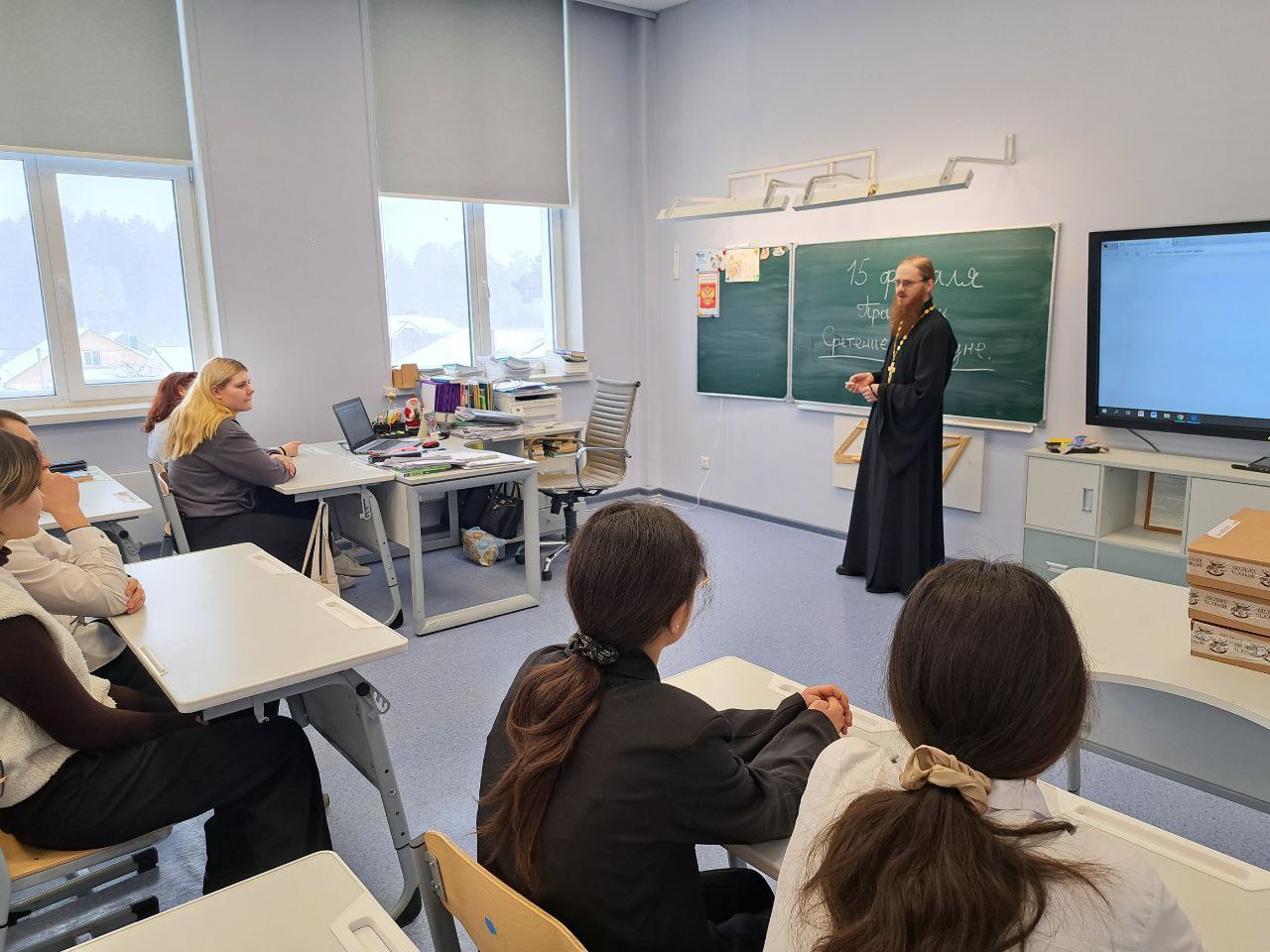 15 февраля в праздник Сретения Господня – День православной молодёжи - игумен Бобренева монастыря Иоанн (Железов) посетил Песковскую среднюю общеобразовательную школу. Отец Иоанн провел беседу с учениками 10 и 11 классов на тему праздника и рассказал об основных понятиях духовной жизни. В конце беседы ребята задавали вопросы, после чего каждый получил от монастыря сладкий подарок.