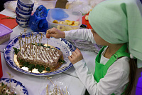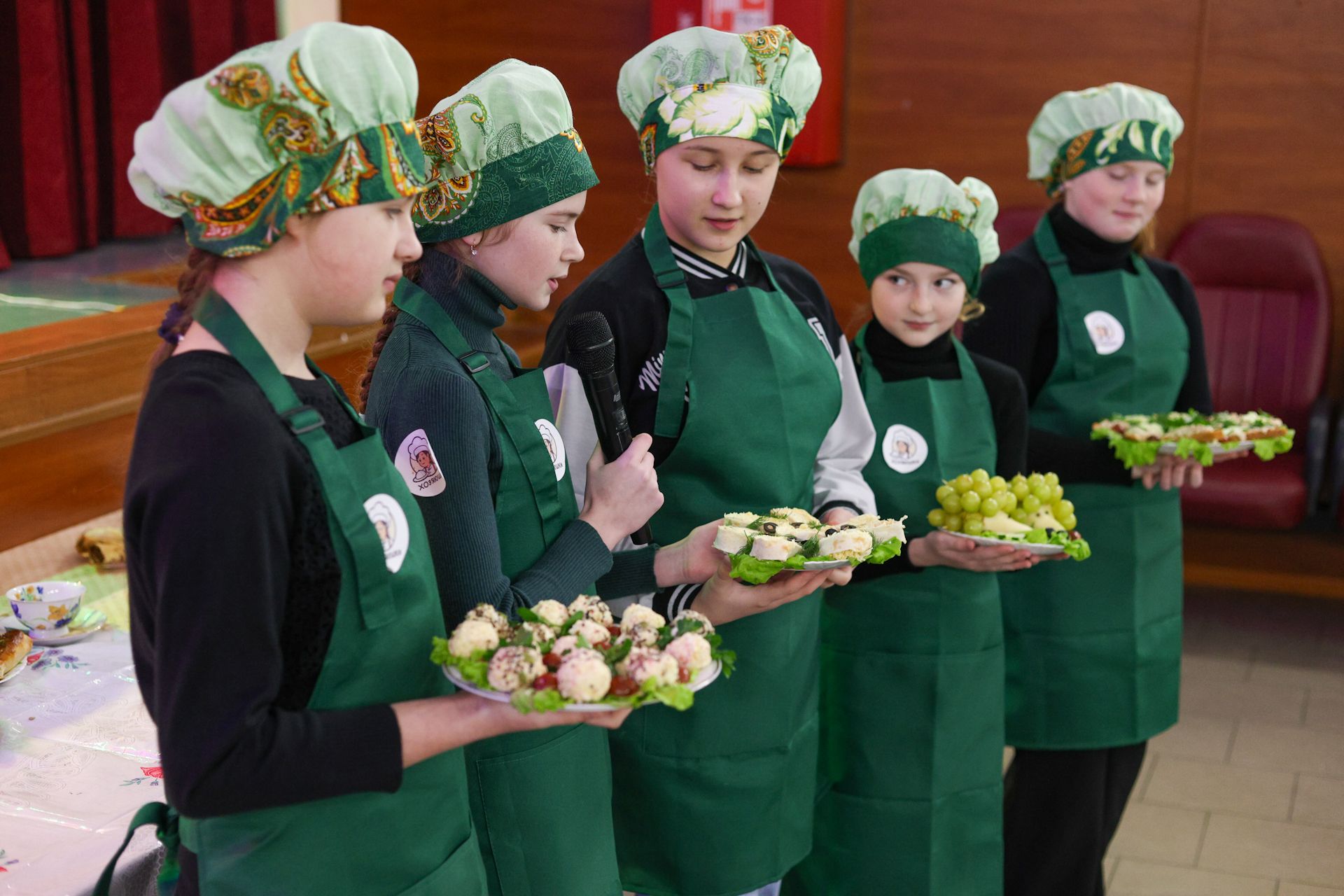 Каждая из команд готовила домашнее задание – плакат с названием команды, эмблему, девиз, меню и сервировку стола. Конкурсное задание заключалось в приготовлении от 2-х до 4-х блюд. После оценки готовых блюд уважаемым жюри, дети сами смогли оценить блюда приготовленные другими командами за общим столом. Группы поддержки команд выступили на сцене с концертными номерами.