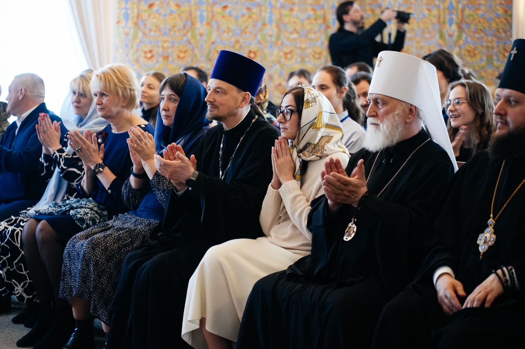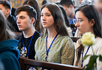 За богослужением молились представители молодёжных объединений приходов епархий Московской митрополии.